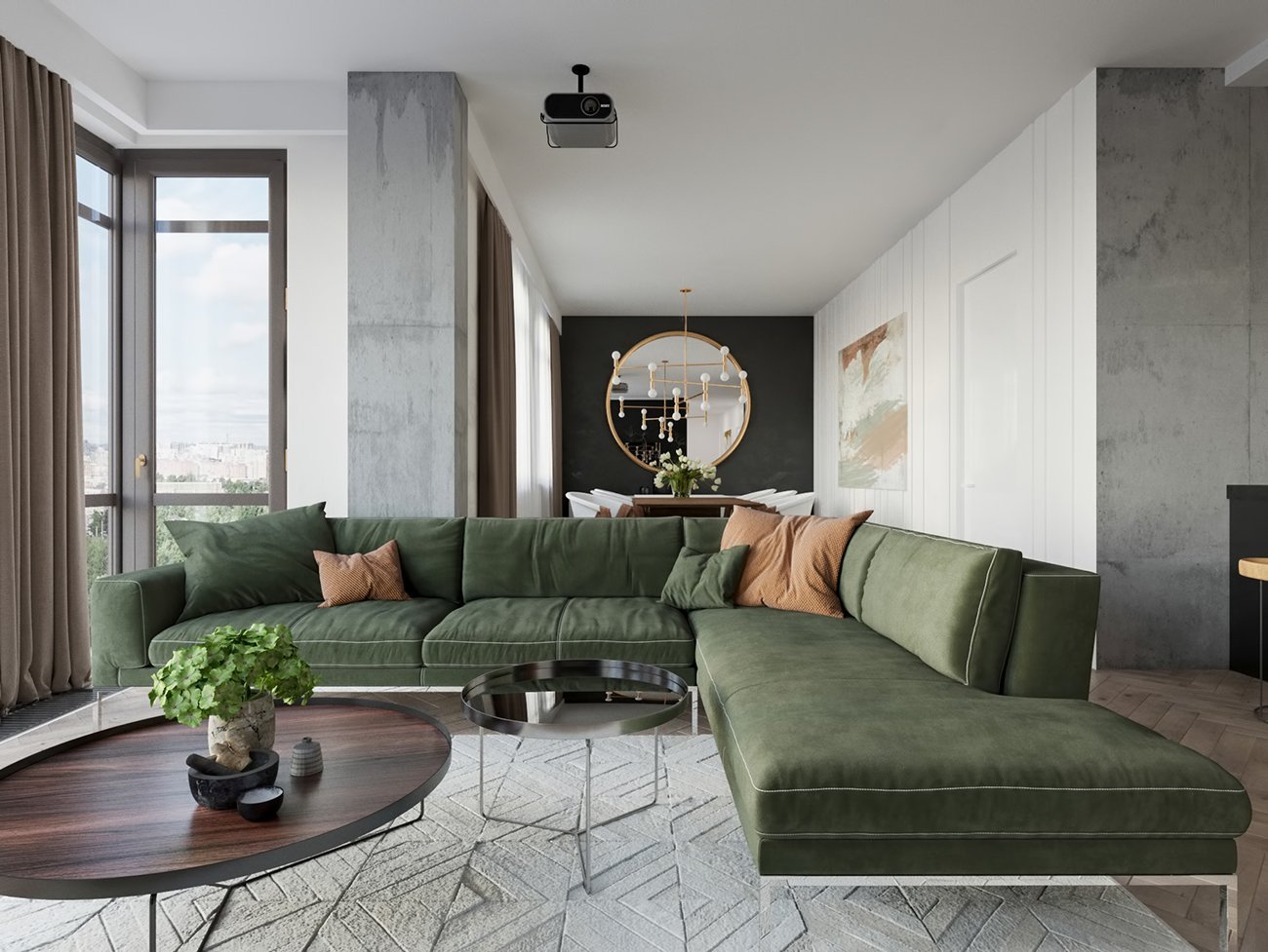 Скандинавский стиль с зеленым диваном
