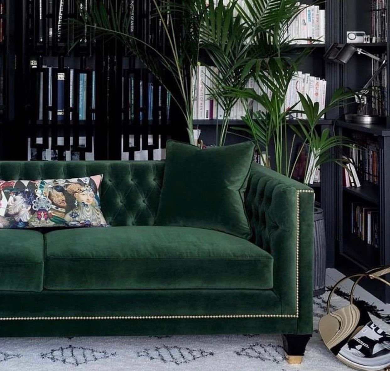 Диван изумрудного цвета в интерьере