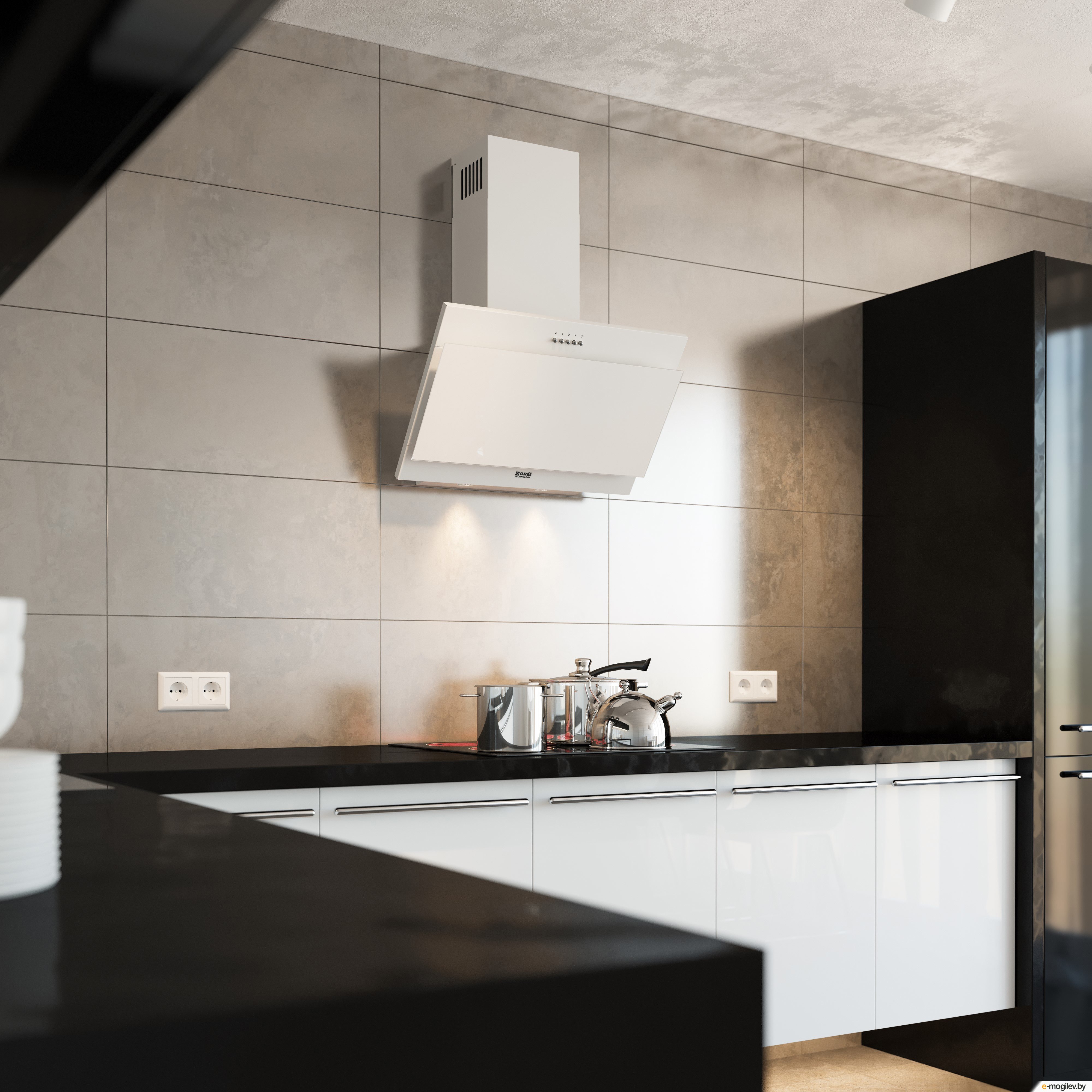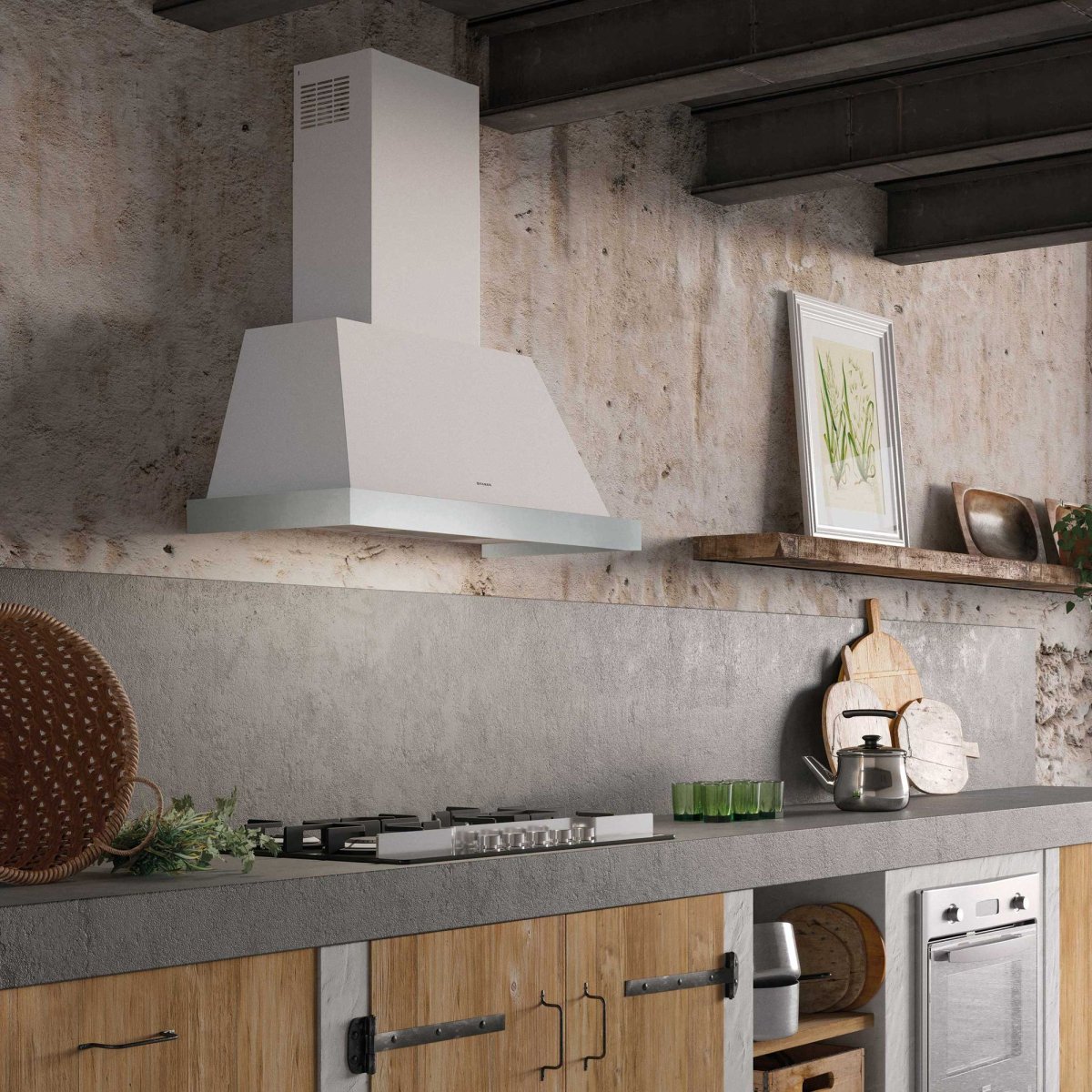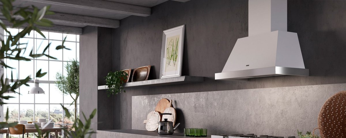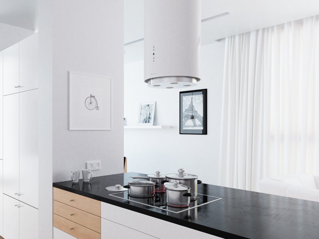 Белая вытяжка в интерьере