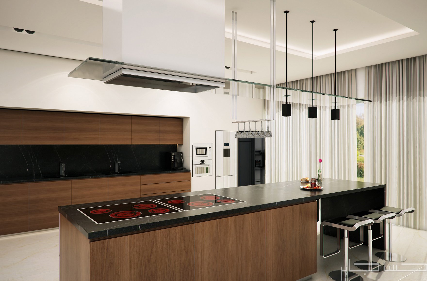 Кухонный остров с плитой и вытяжкой