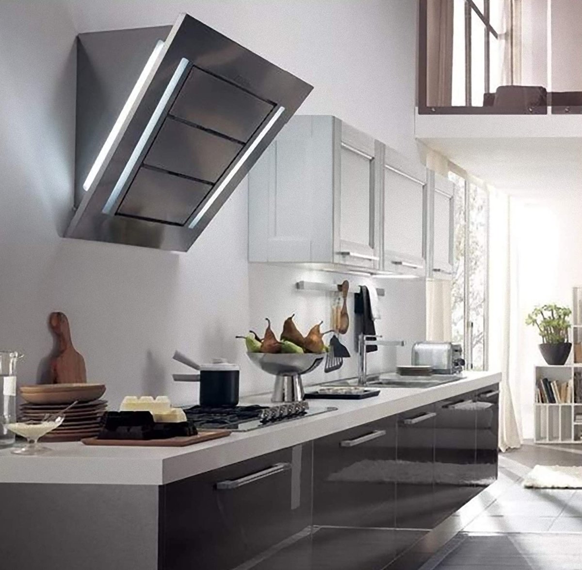 Косая вытяжка на кухне