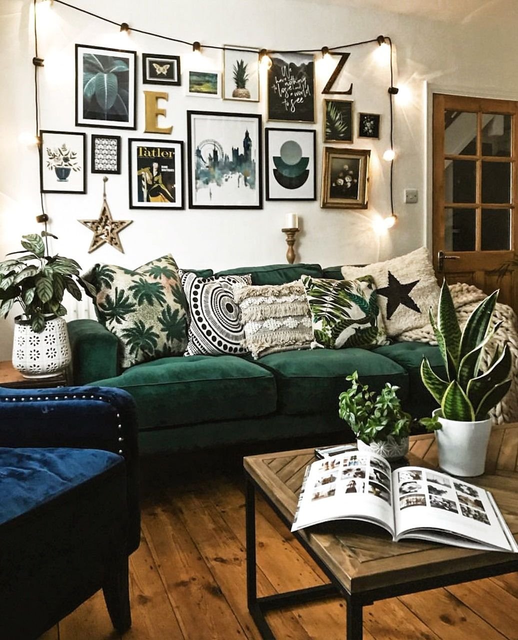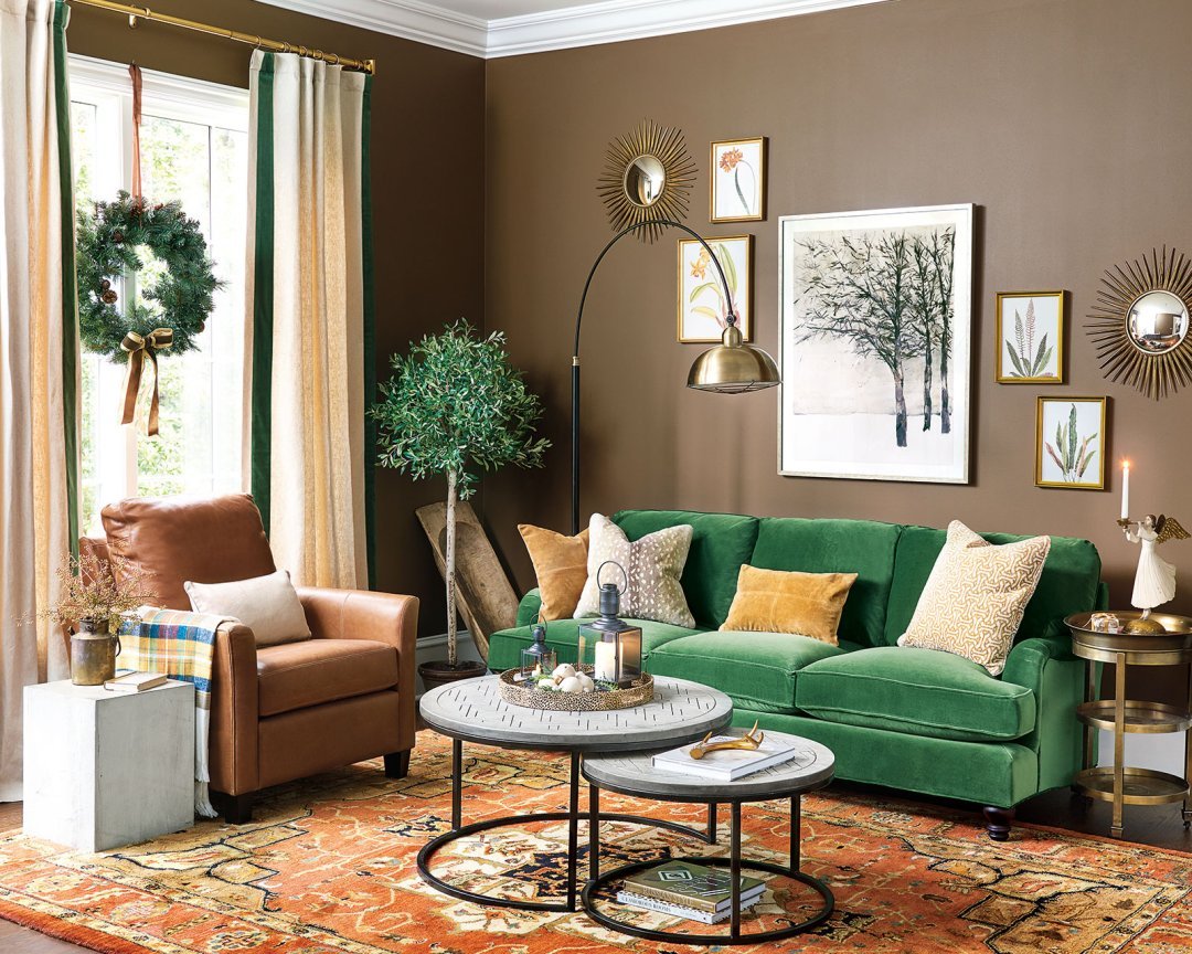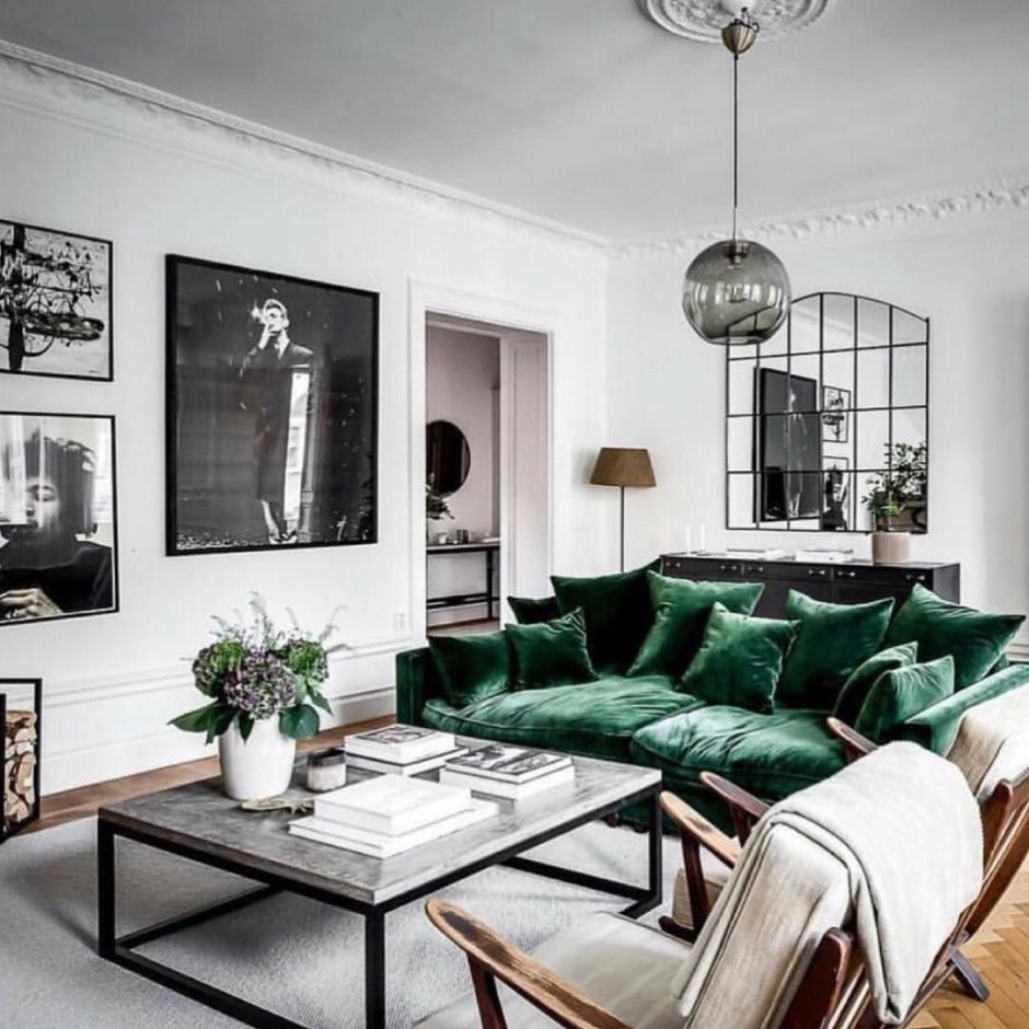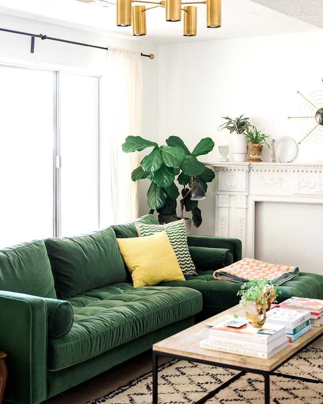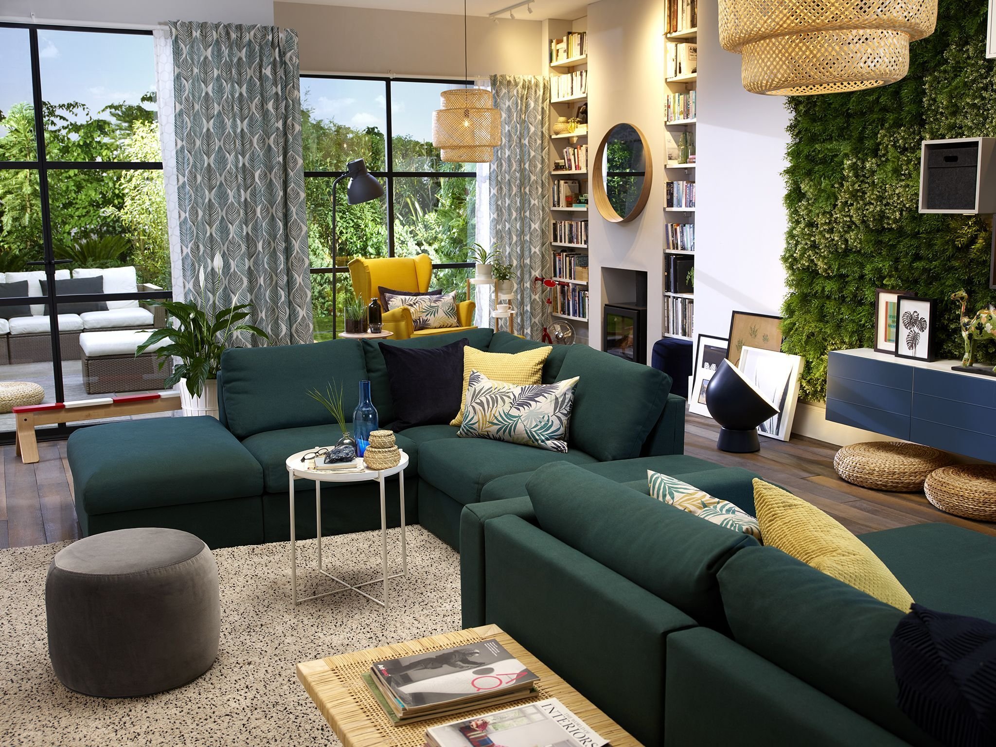 Гостиная в бирюзовых тонах в современном стиле с кухней