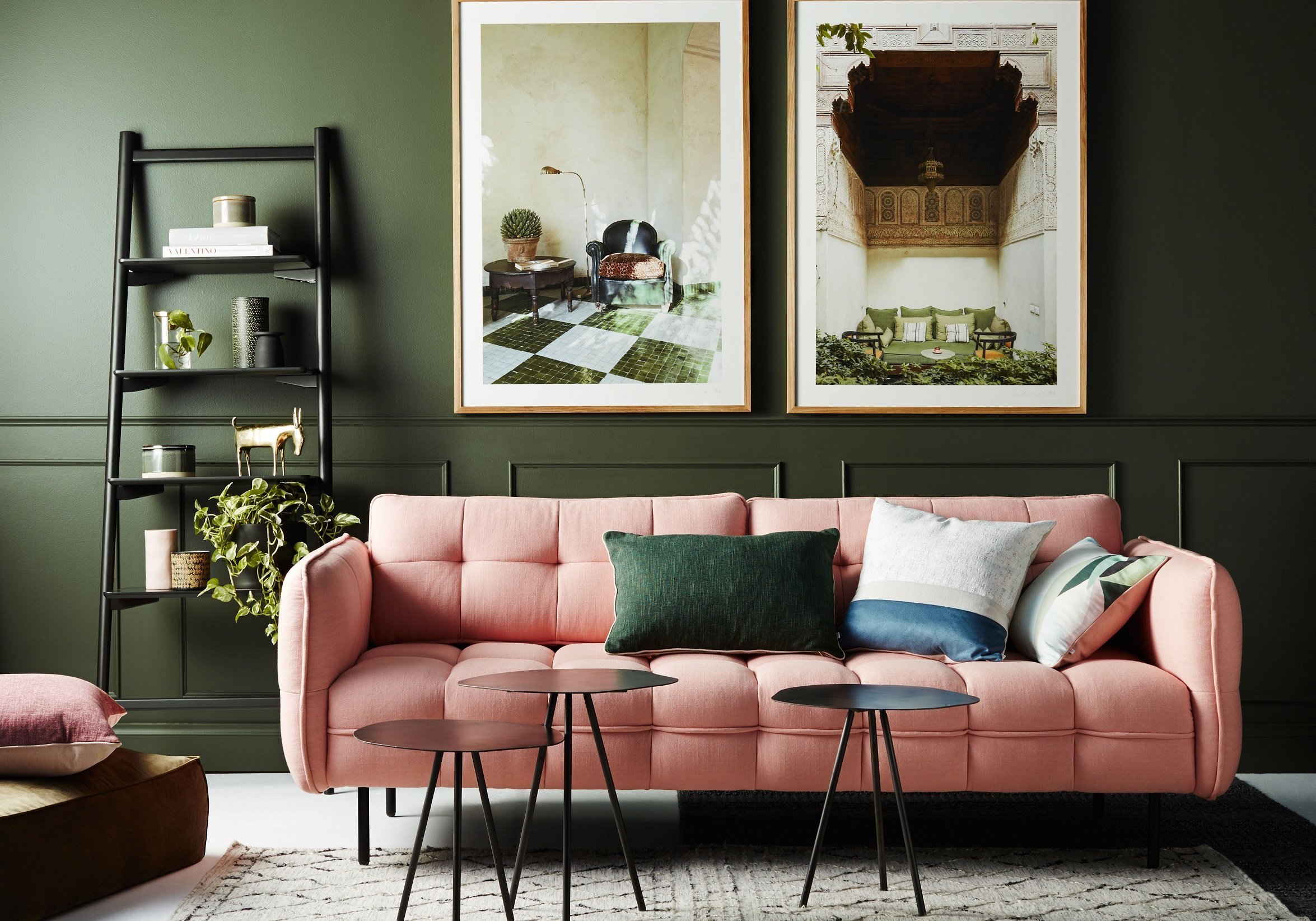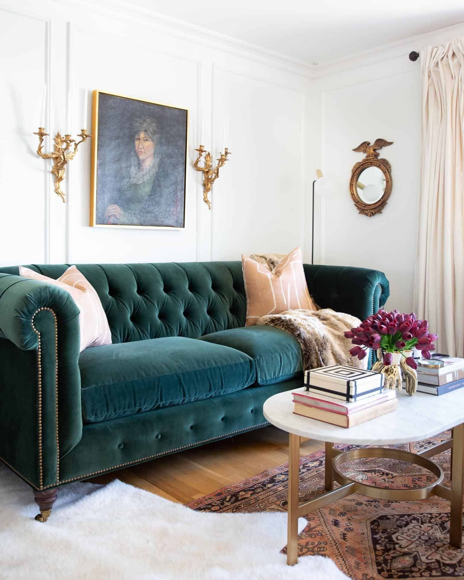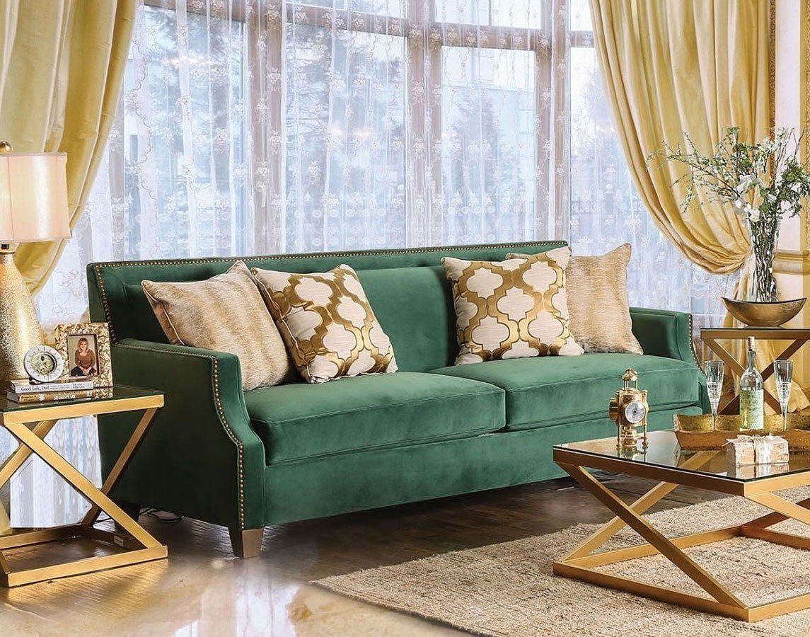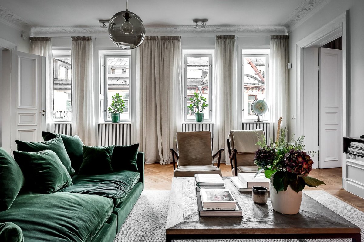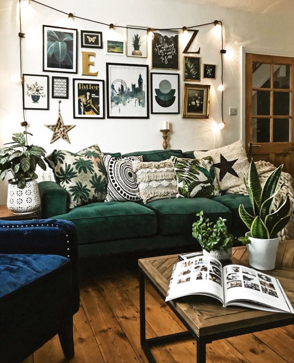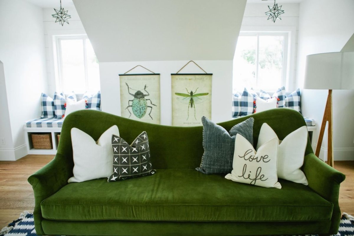 Гостиная в бирюзовых тонах в современном стиле с кухней