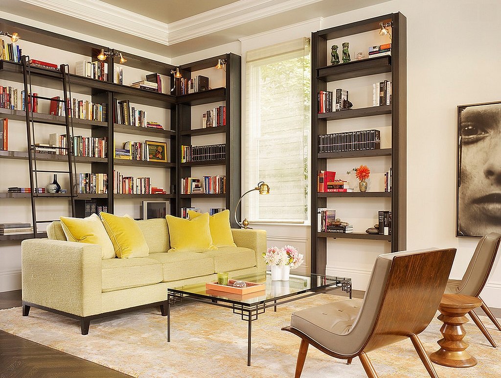 Книжные стеллажи в интерьере гостиной