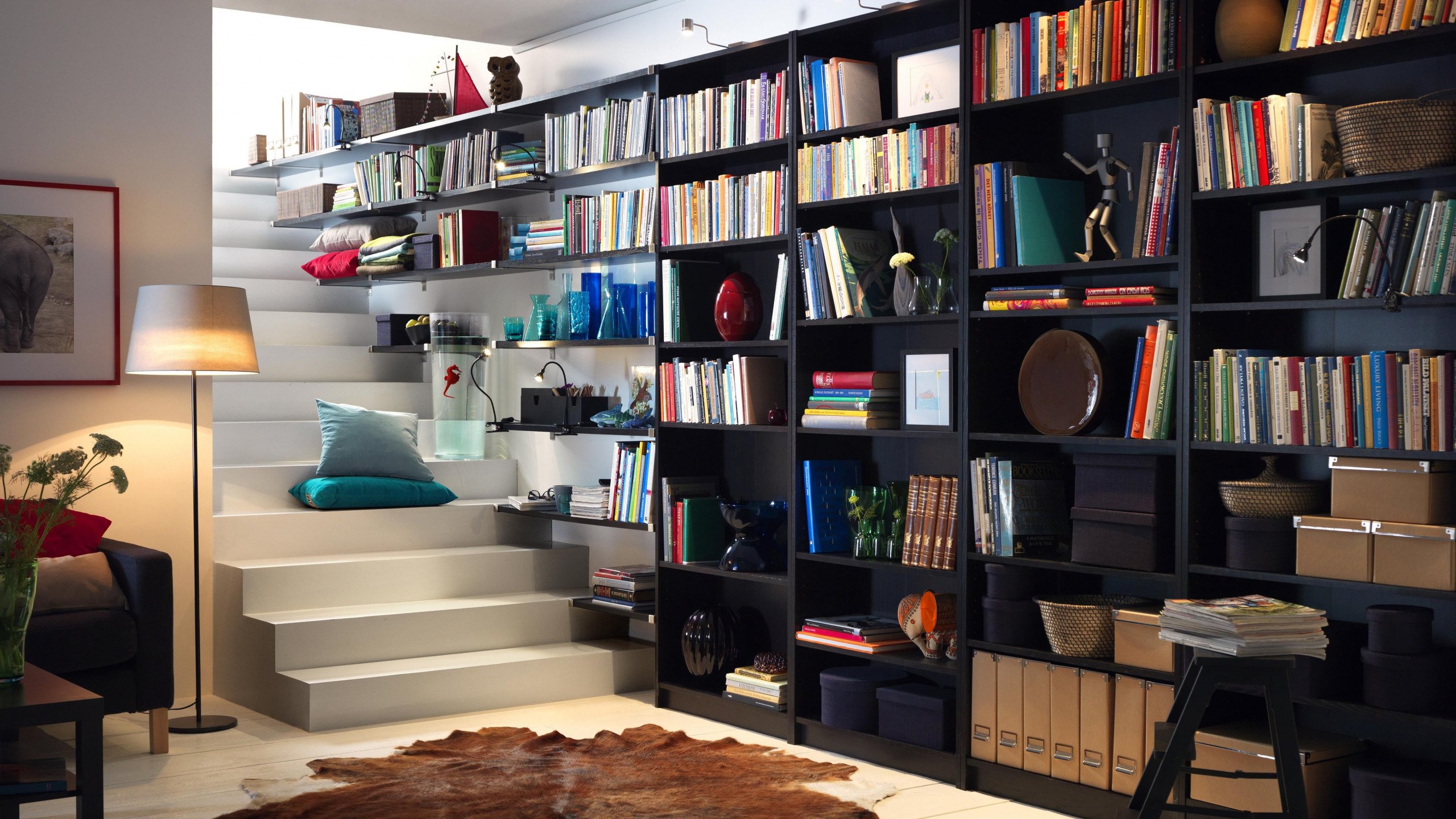 Фотообои книжный шкаф в интерьере