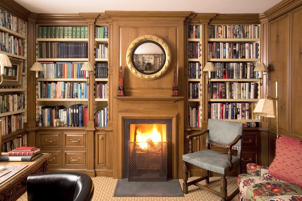 Библиотека с камином