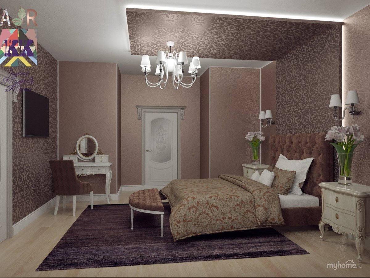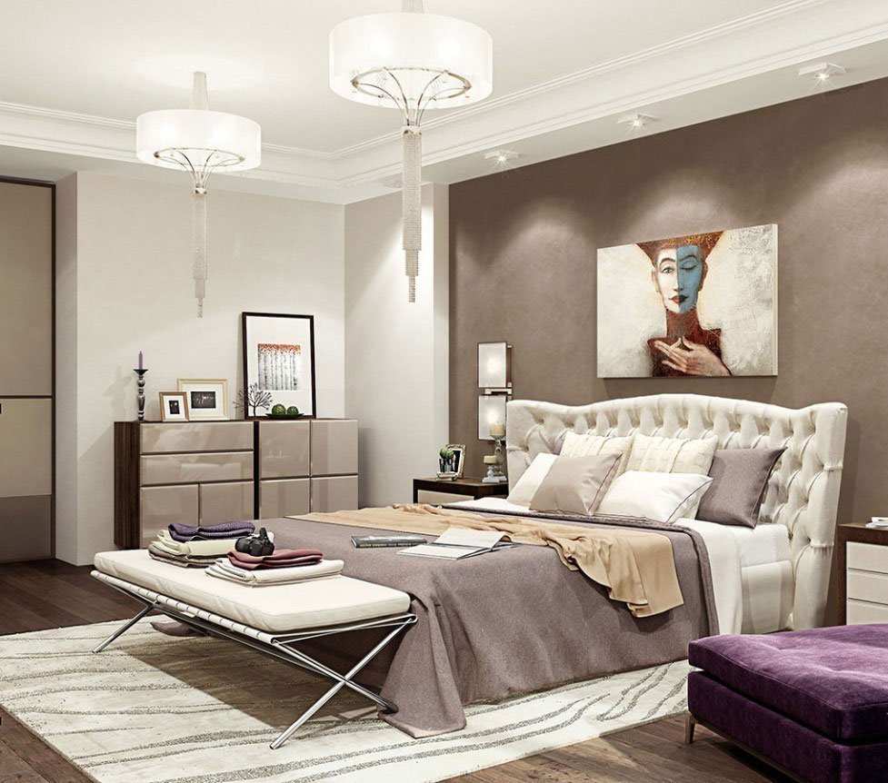Коричневый цвет в интерьере спальни