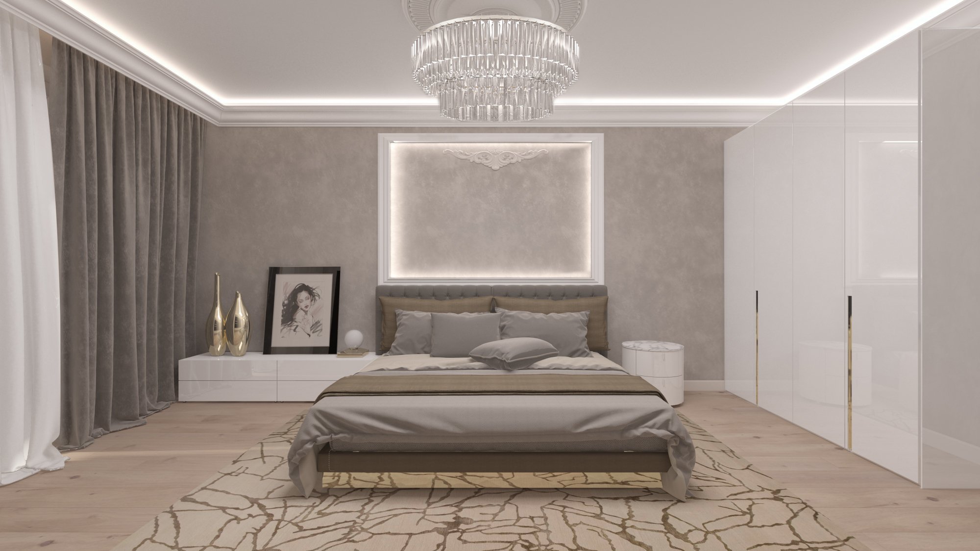 Спальня в цвете кофе с молоком