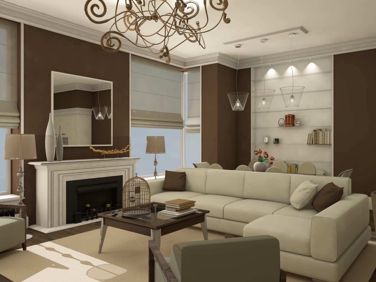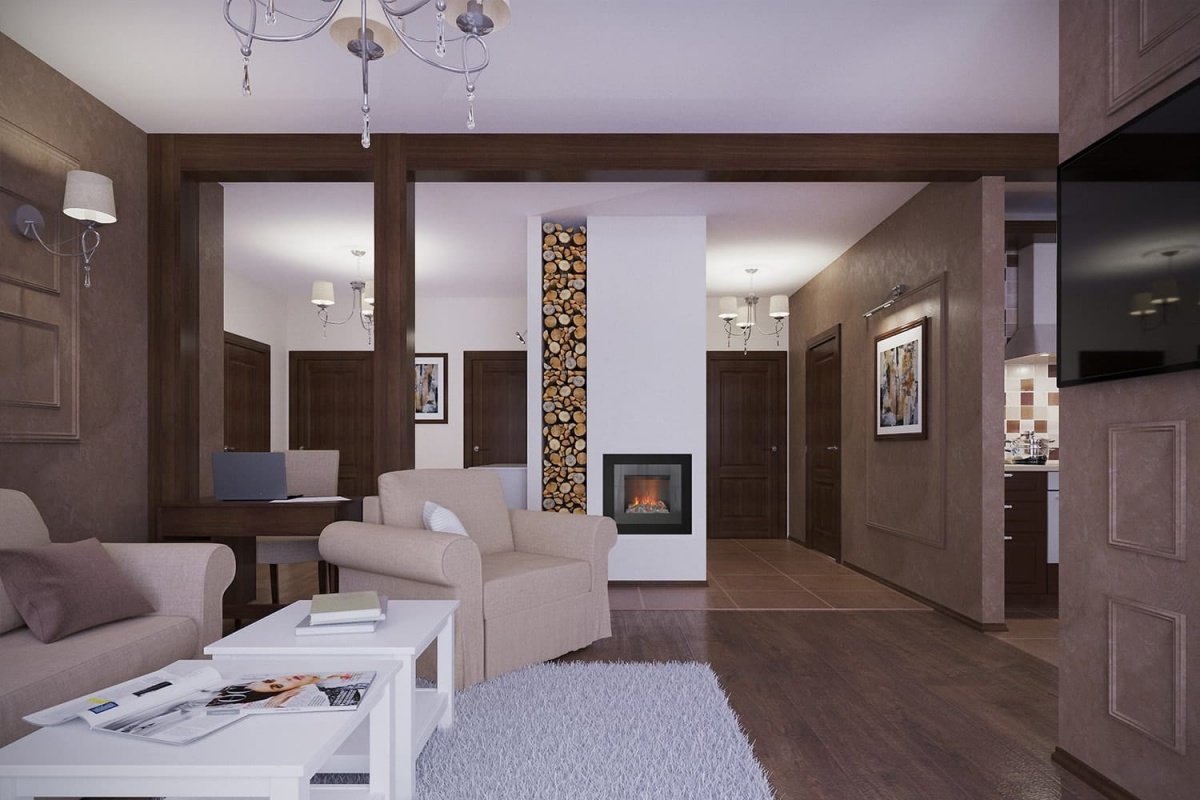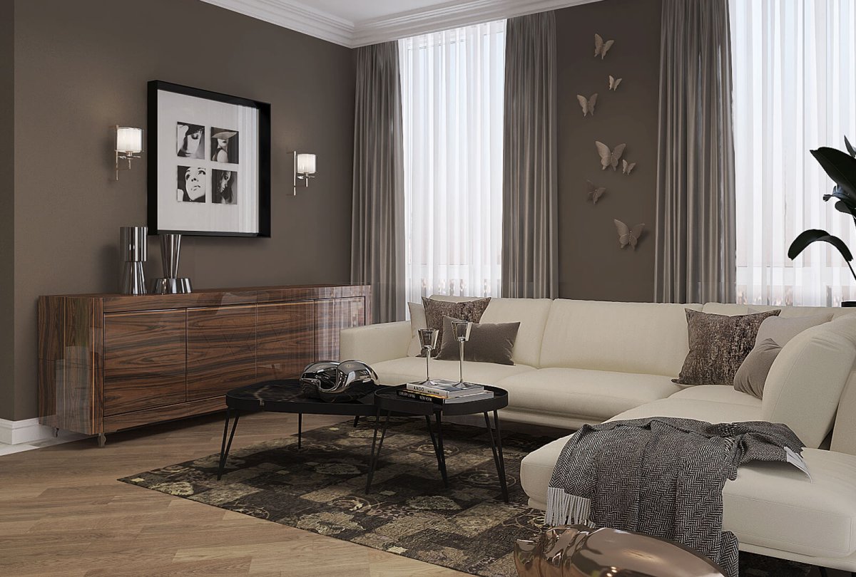 Гостиная в коричневых тонах