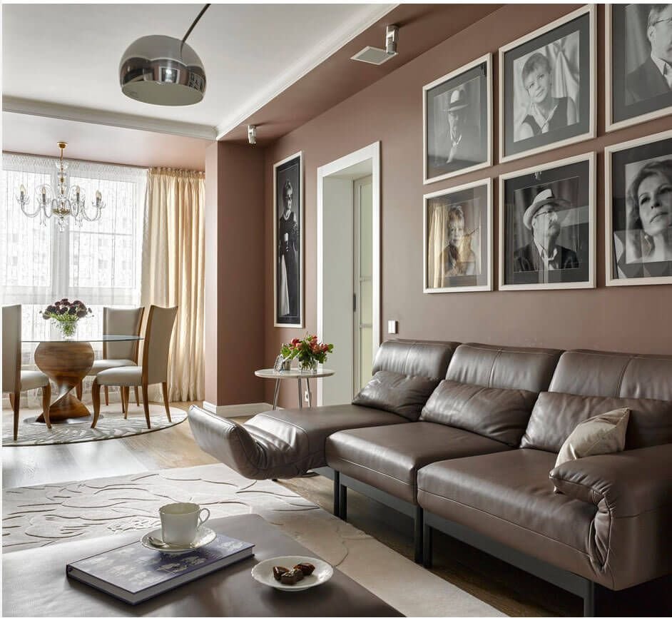 Кофейные стены в гостиной
