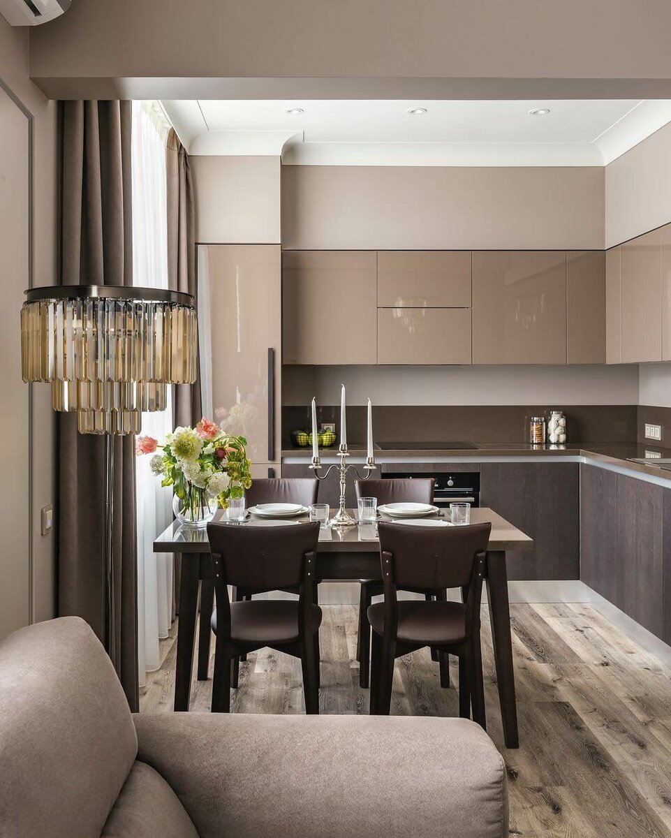 Кухня гостиная в кофейных тонах