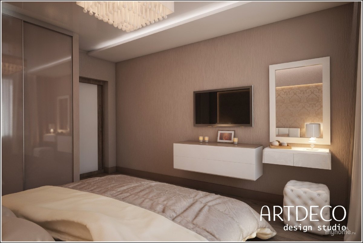 Спальня цвета какао с молоком