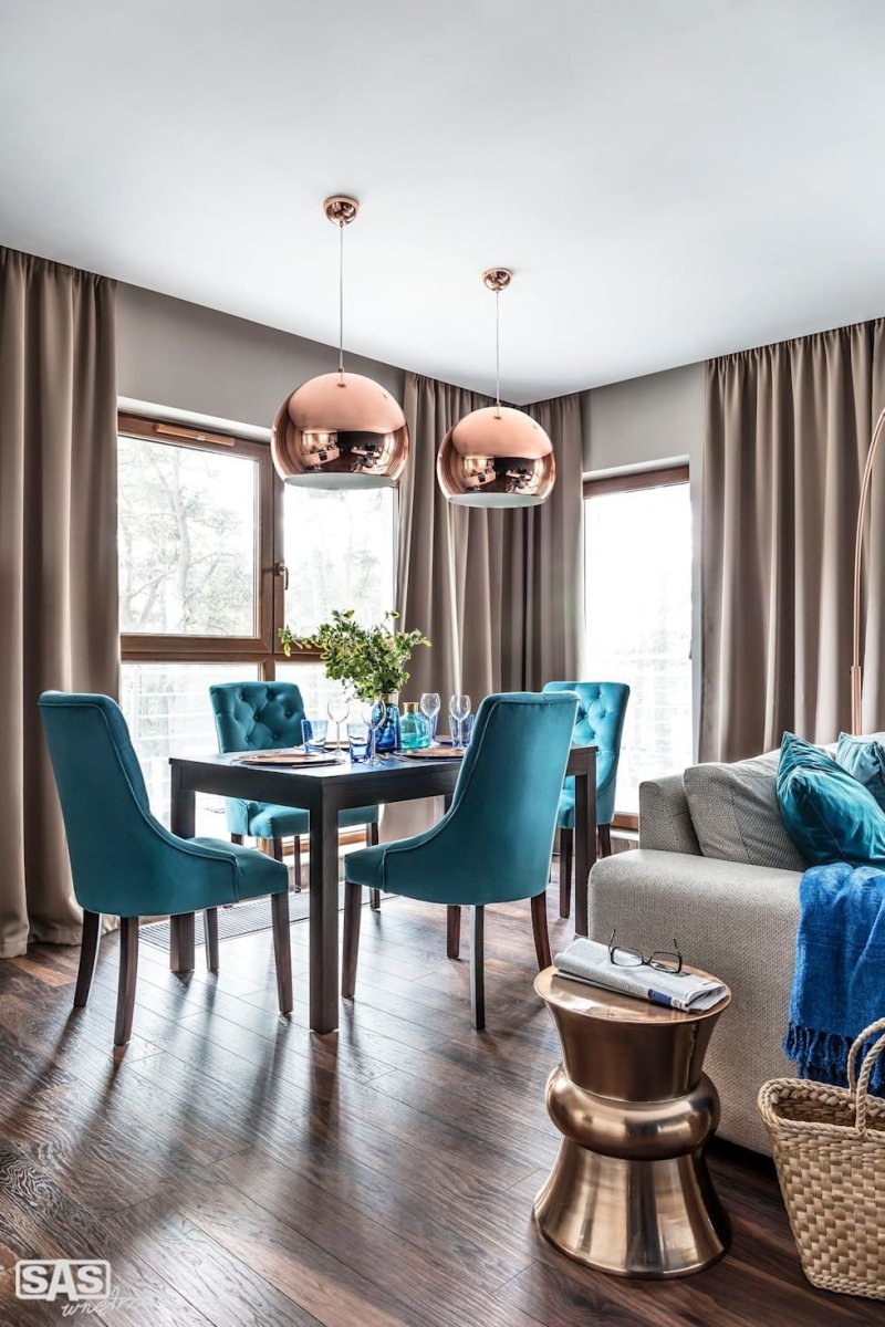 Сочетание голубого и коричневого в интерьере