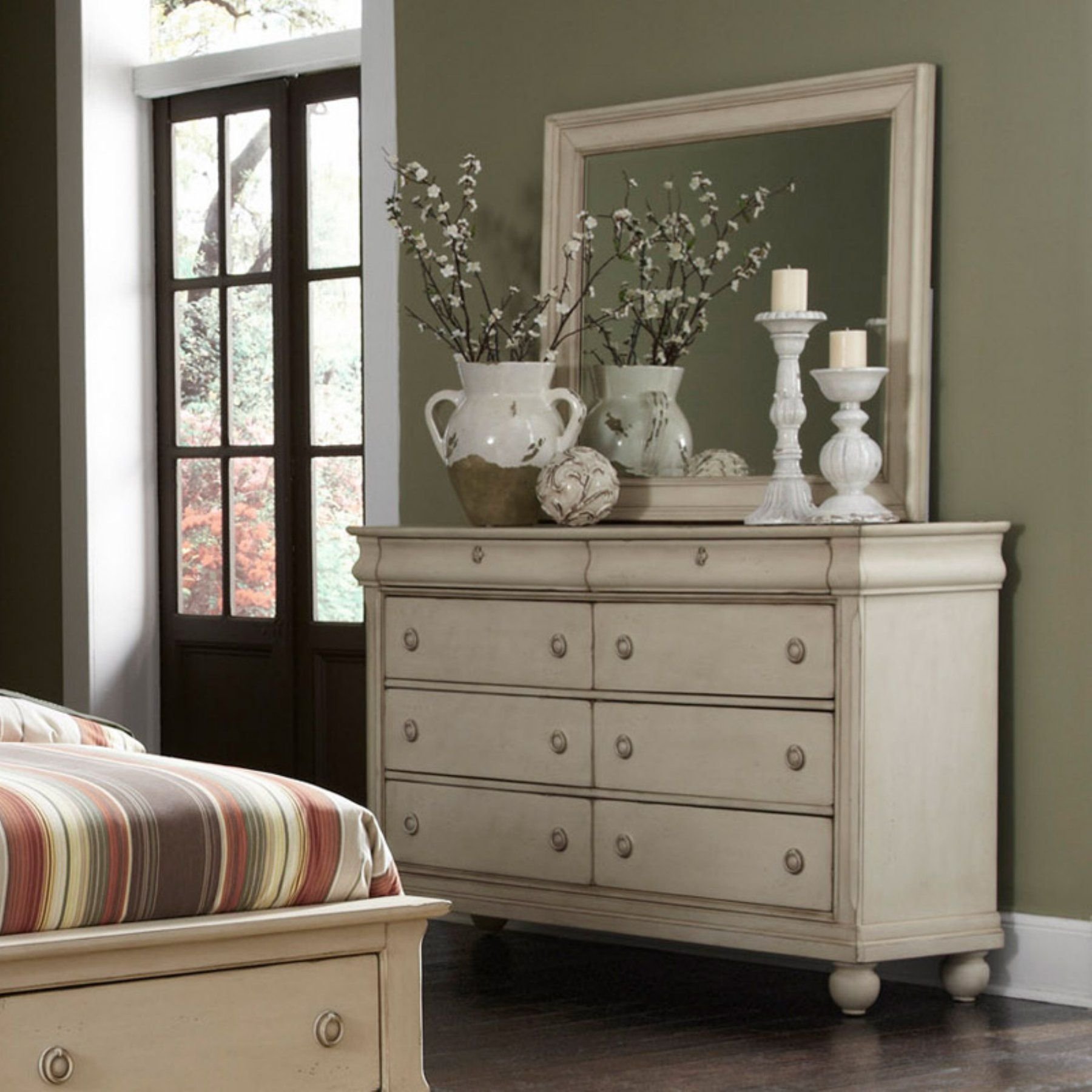 Декор на комоде в спальне