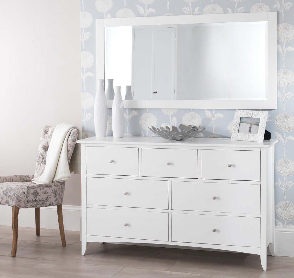 Белый комод с зеркалом в спальню