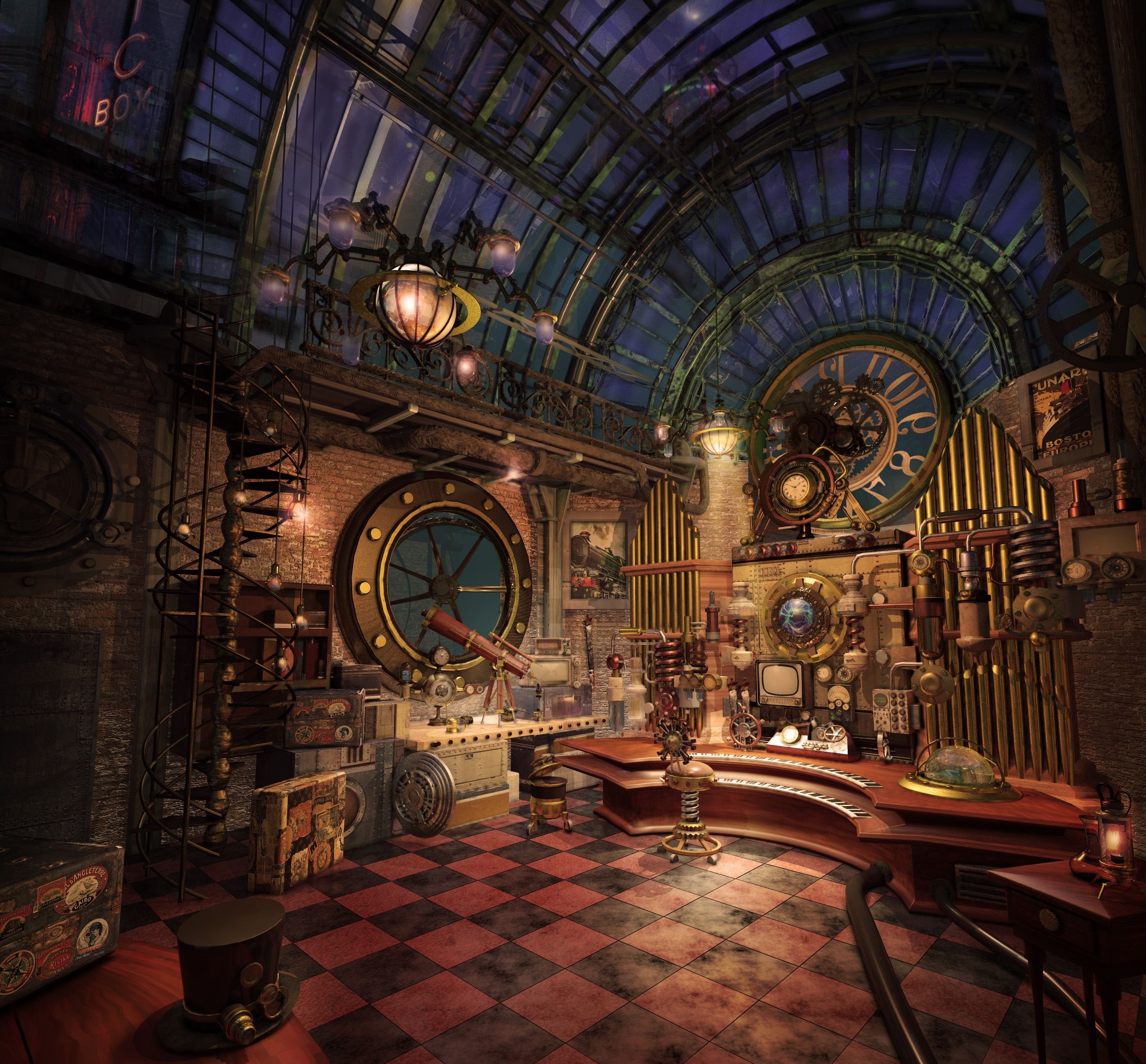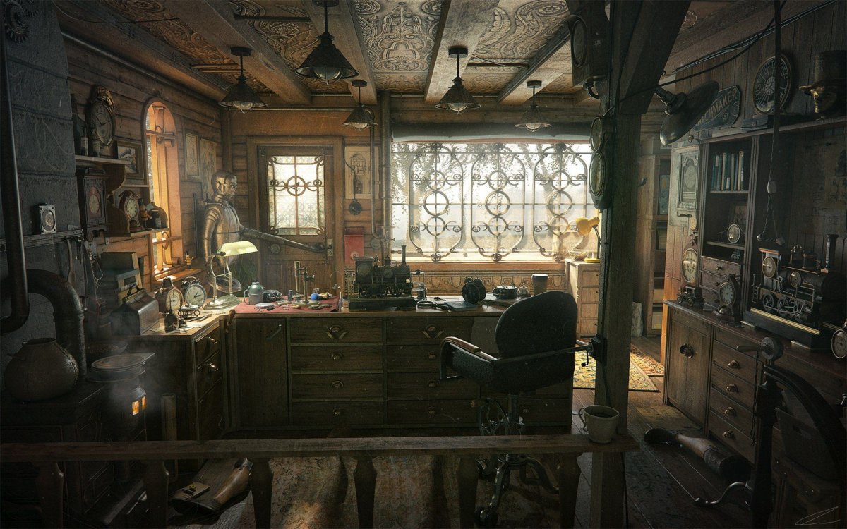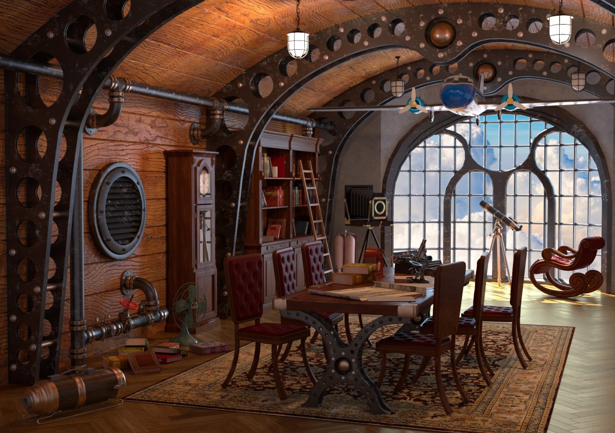 Интерьер комнаты в стиле стимпанк