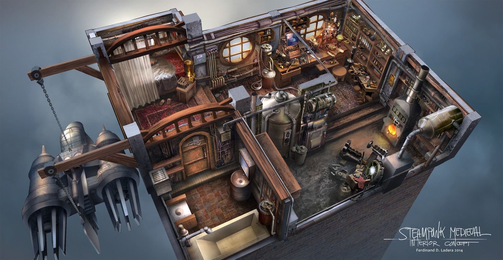 Дизельпанк интерьер арт