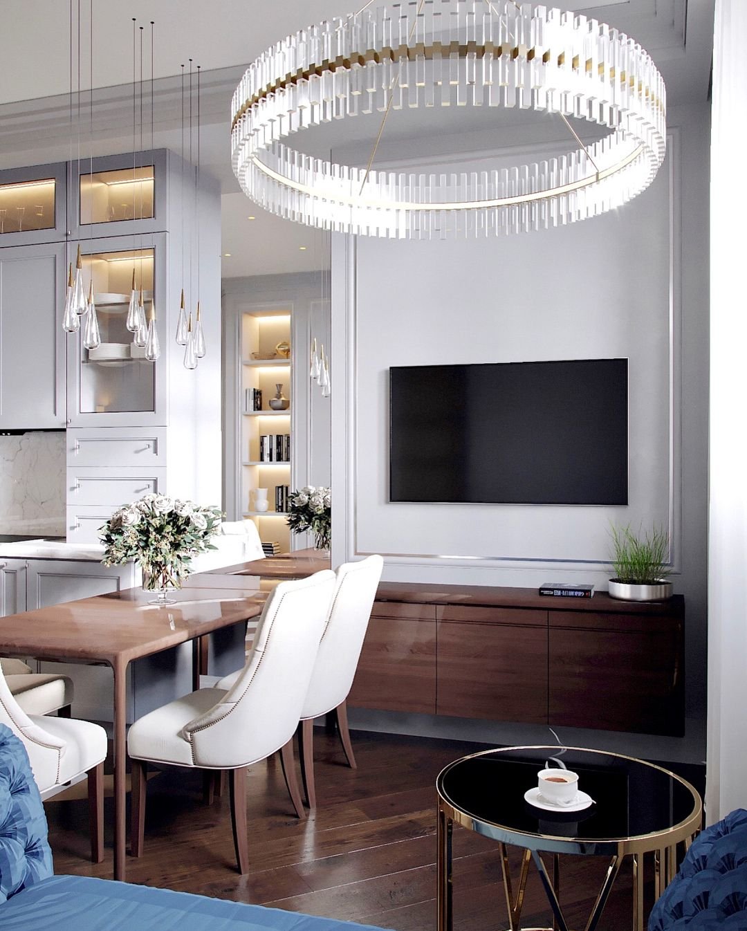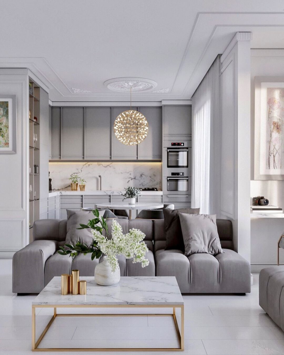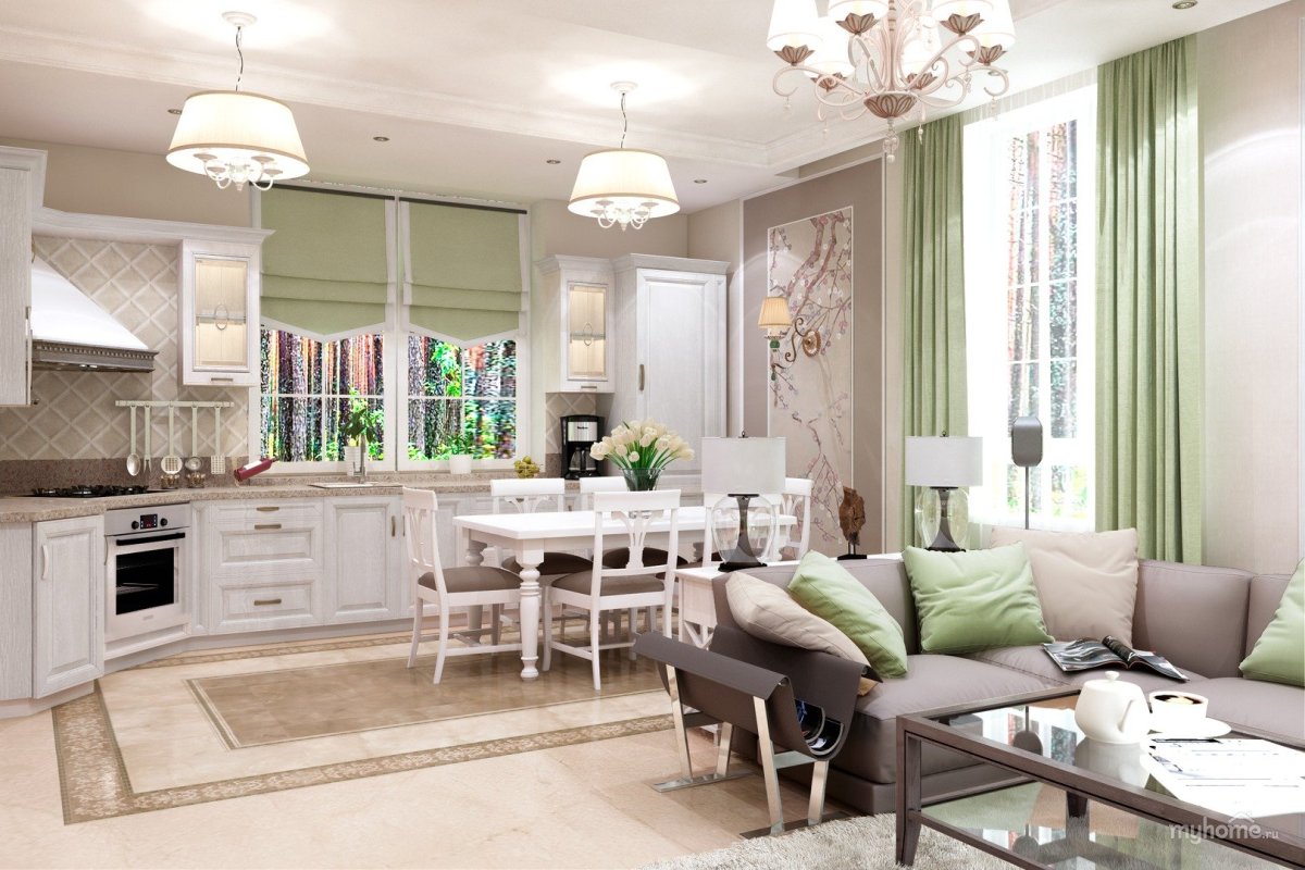 Современные кухни Неоклассика в интерьере кухни гостинной