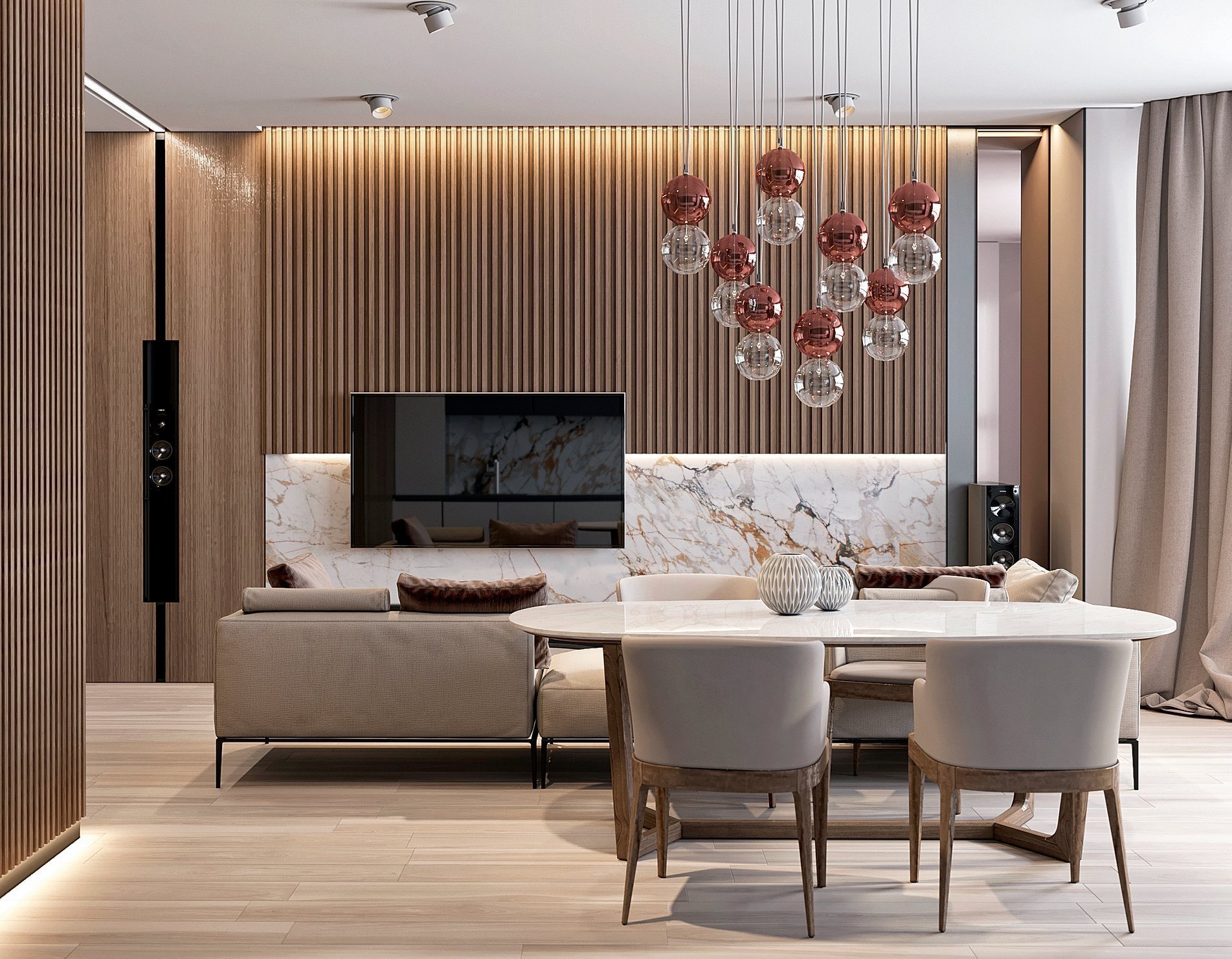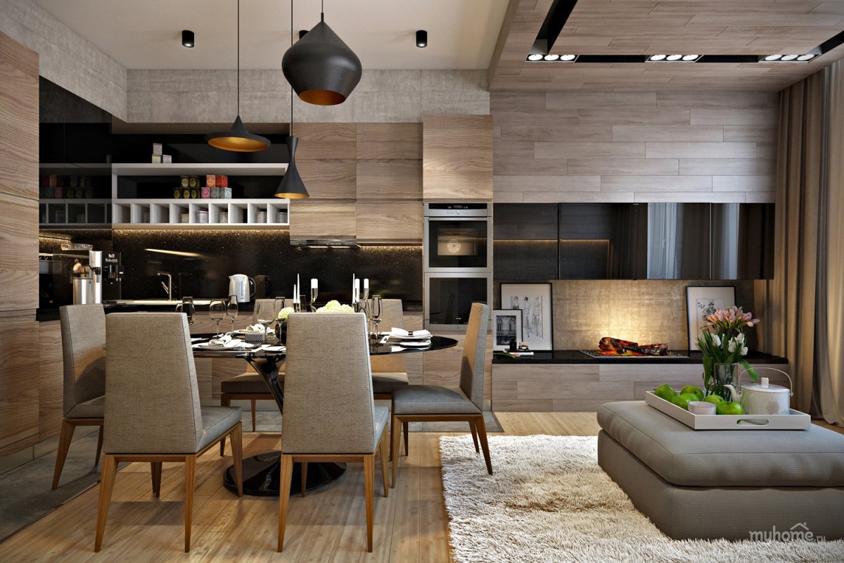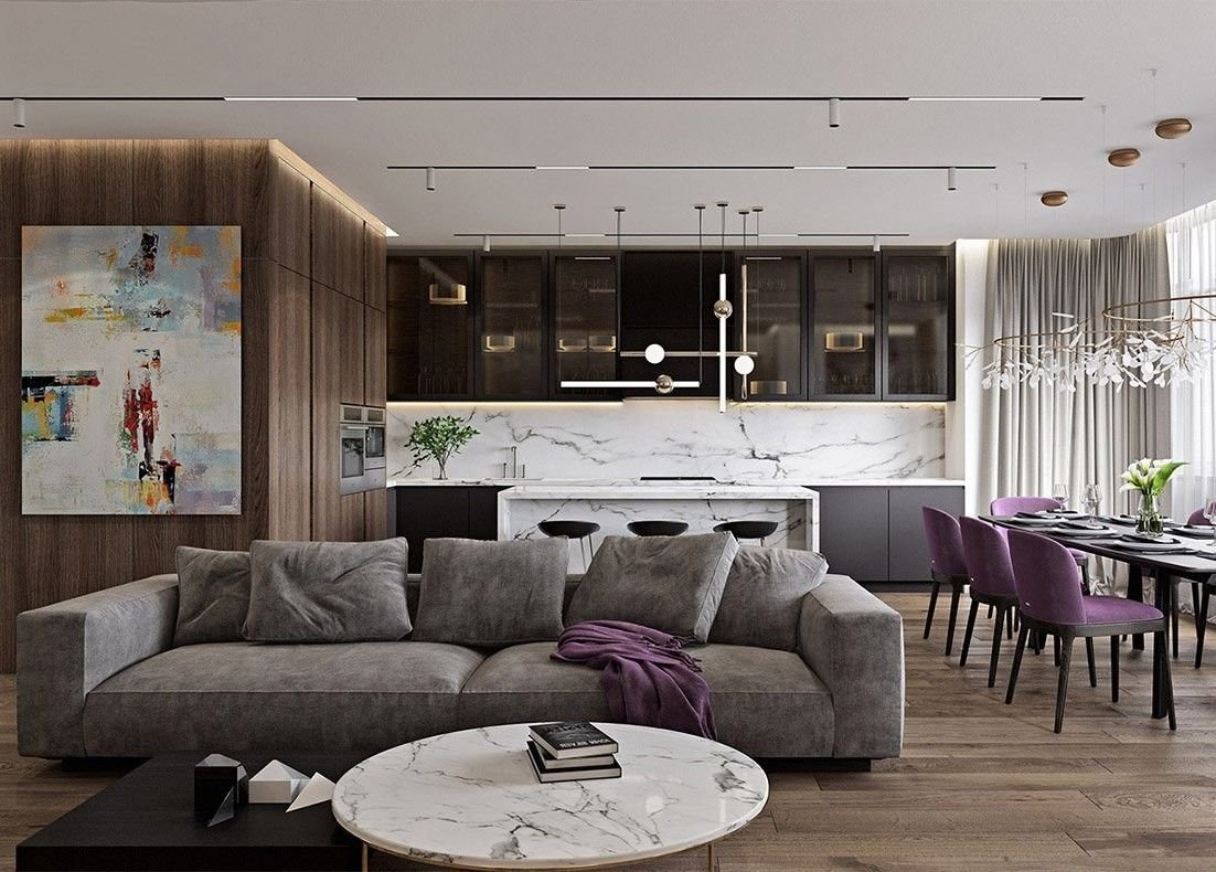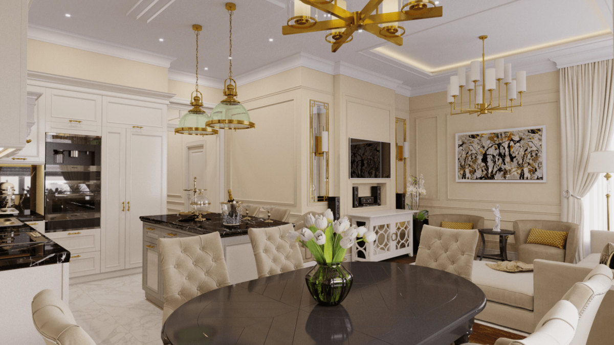 Современные кухни Неоклассика в интерьере кухни гостинной