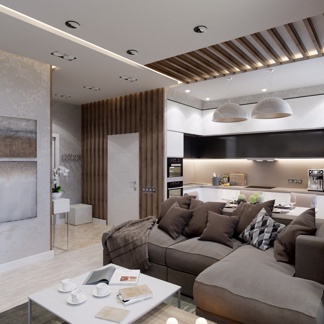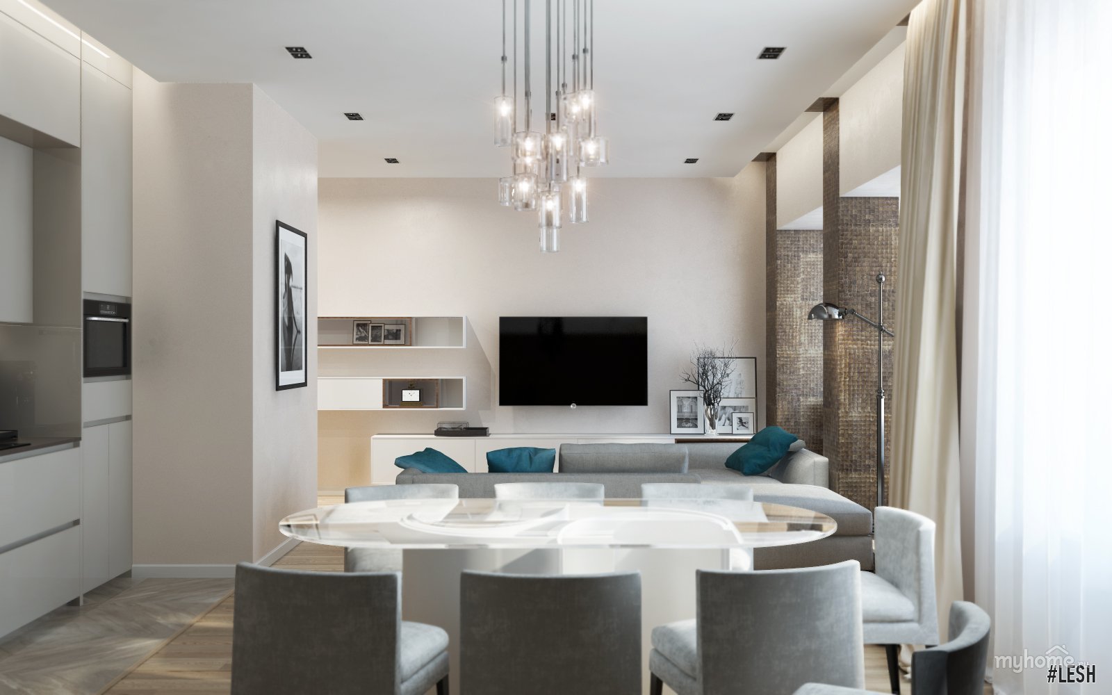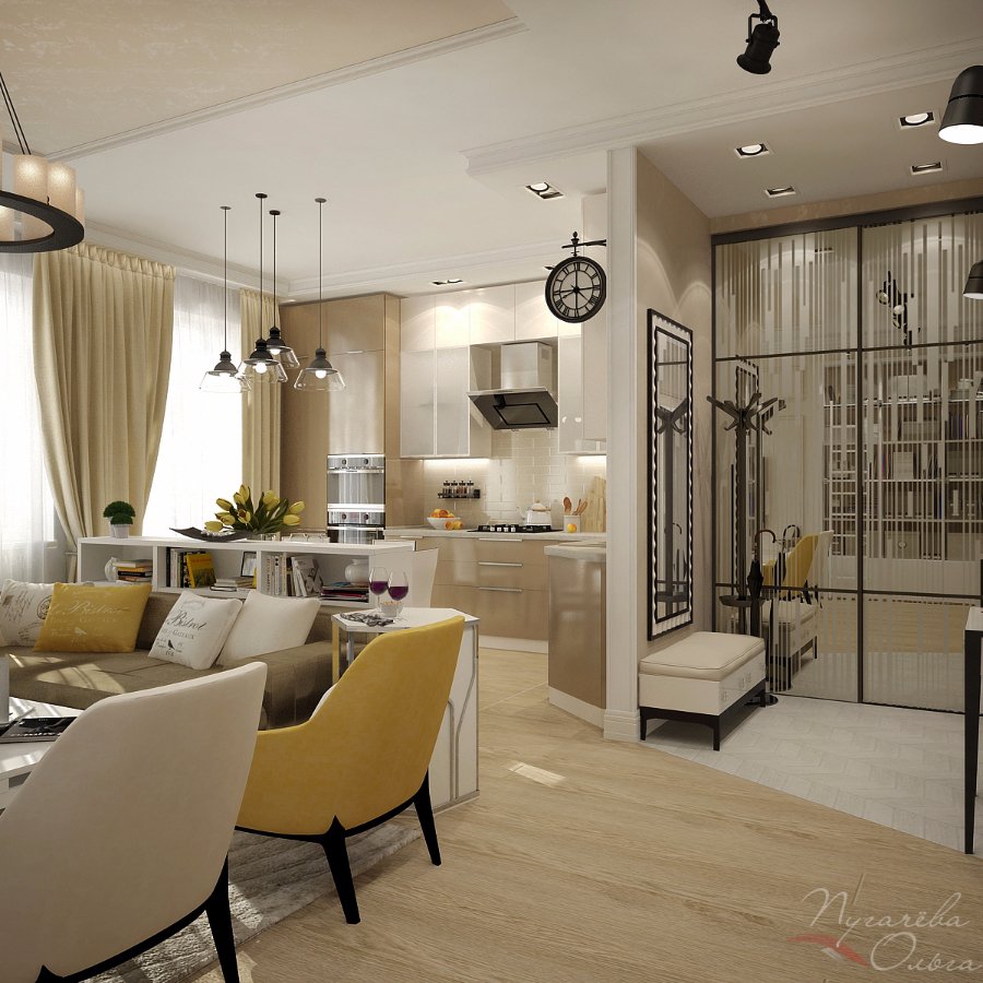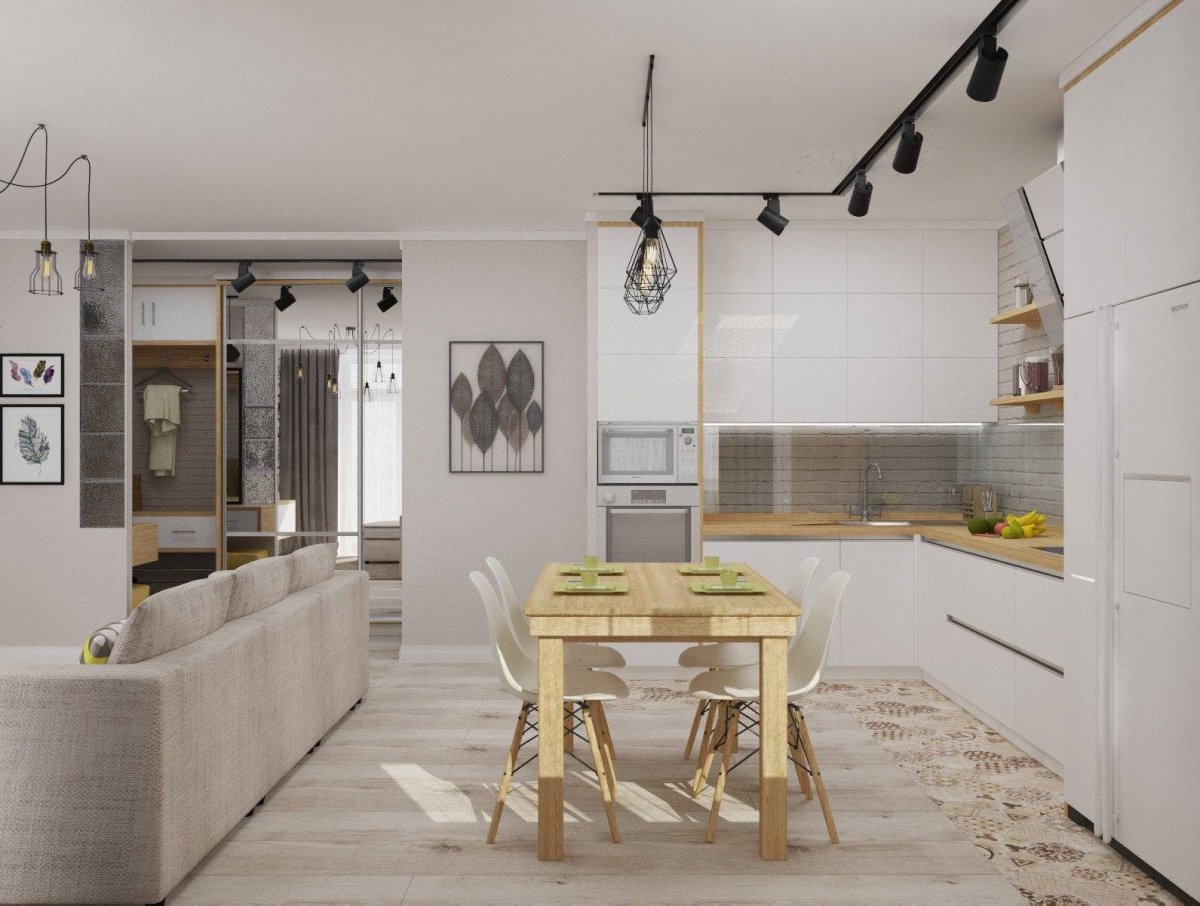 Кухня-гостиная в скандинавском стиле 20 кв.м