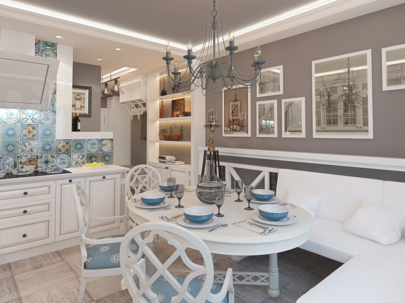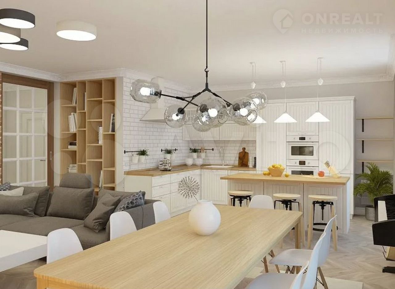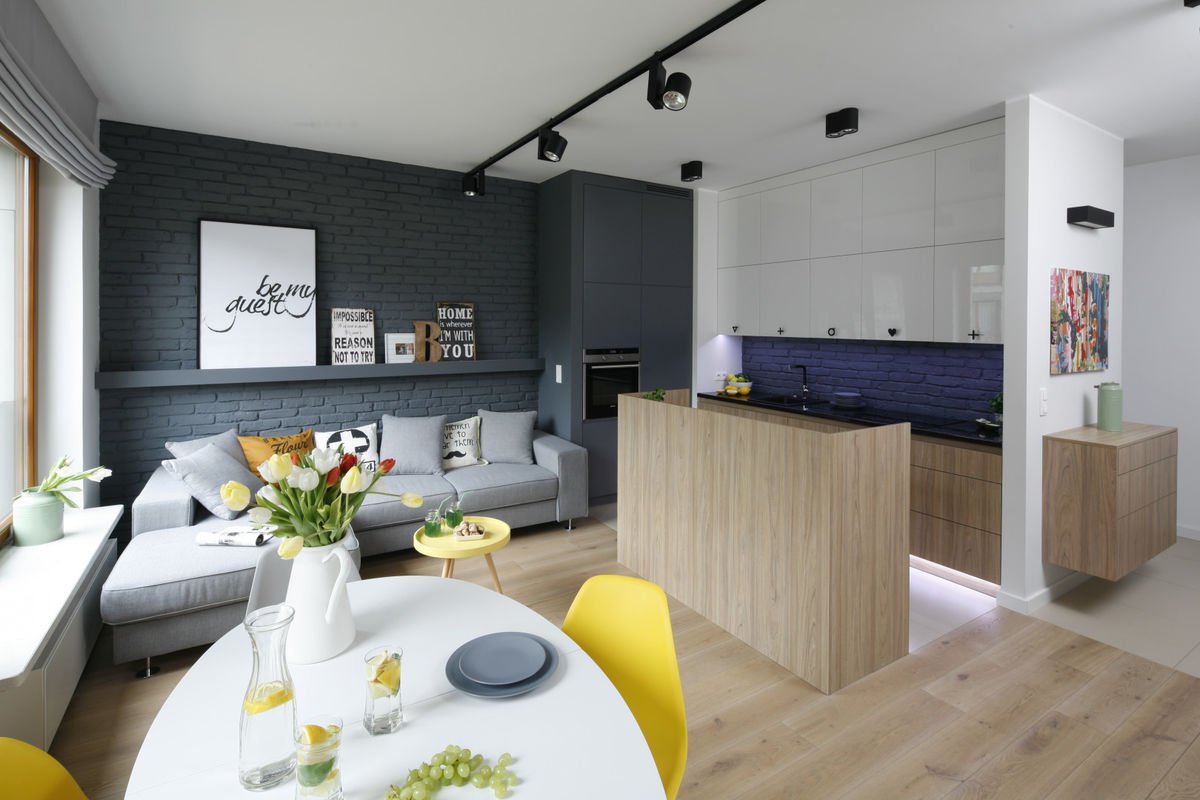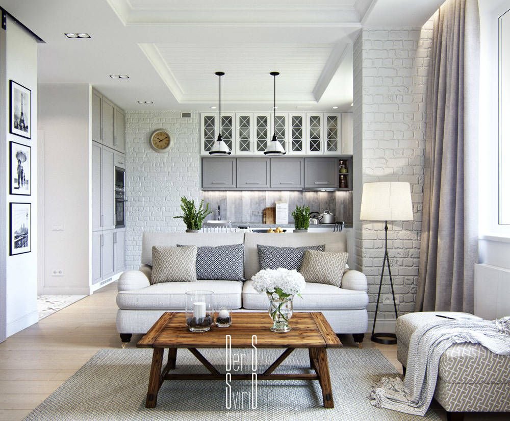 Кухня-гостиная в скандинавском стиле 20 кв.м