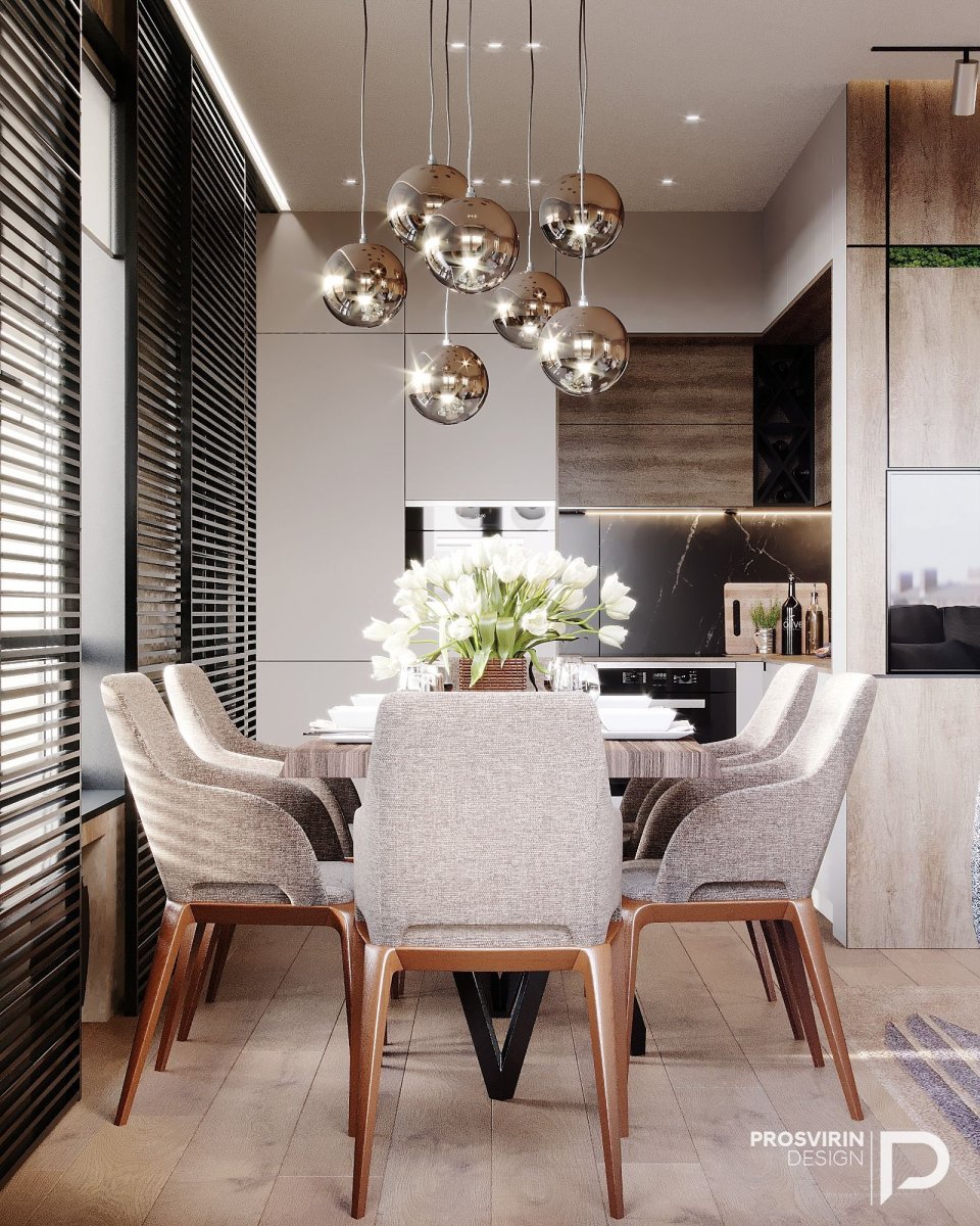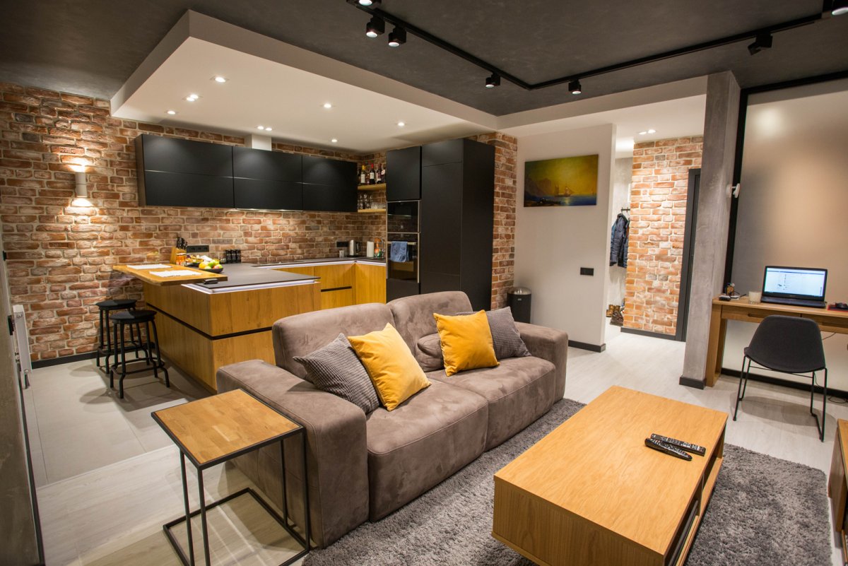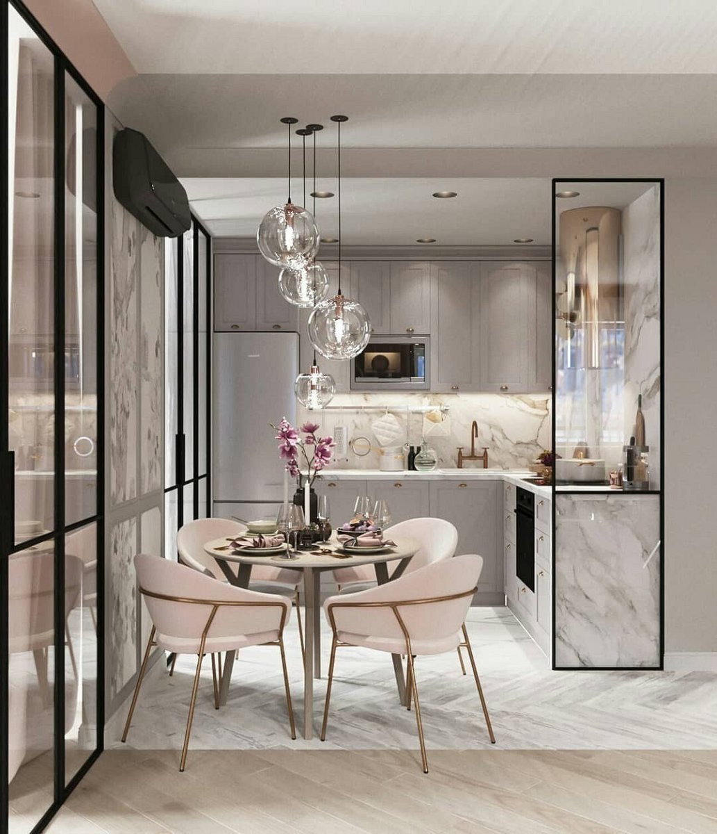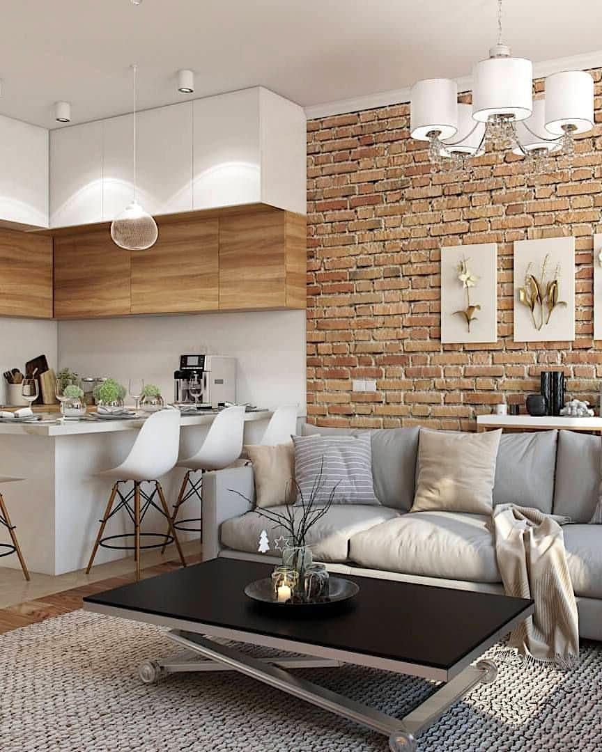 Кухня-гостиная в скандинавском стиле 20 кв.м