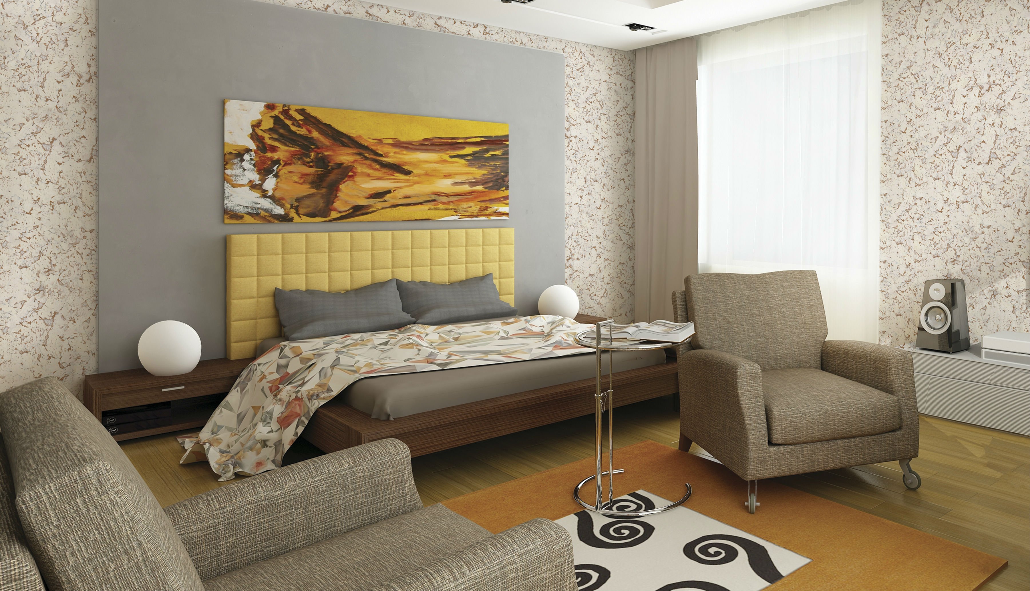 Пробковые панели в спальне