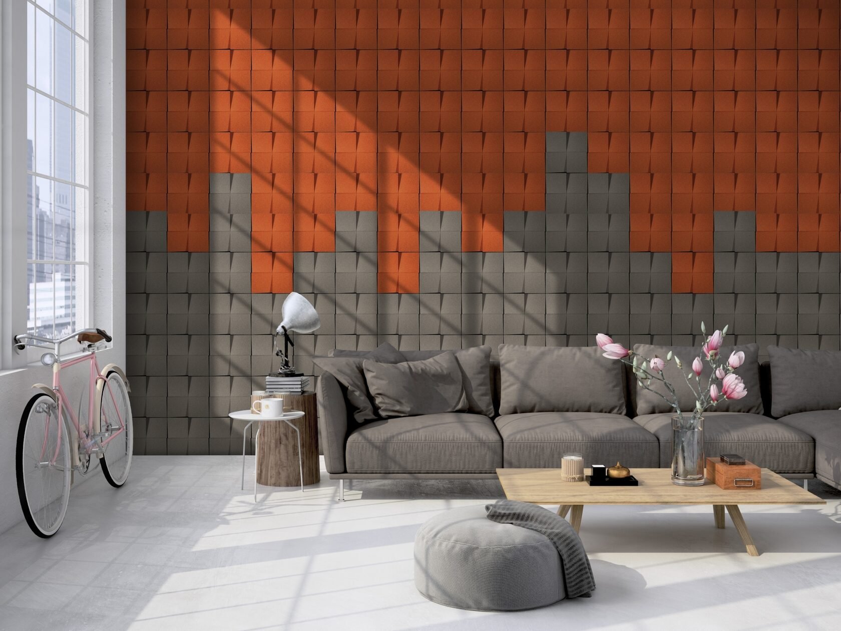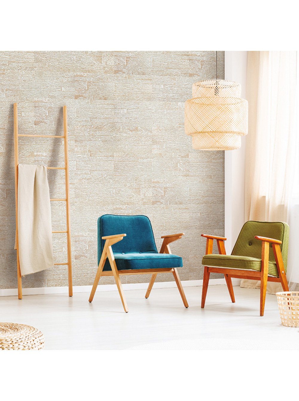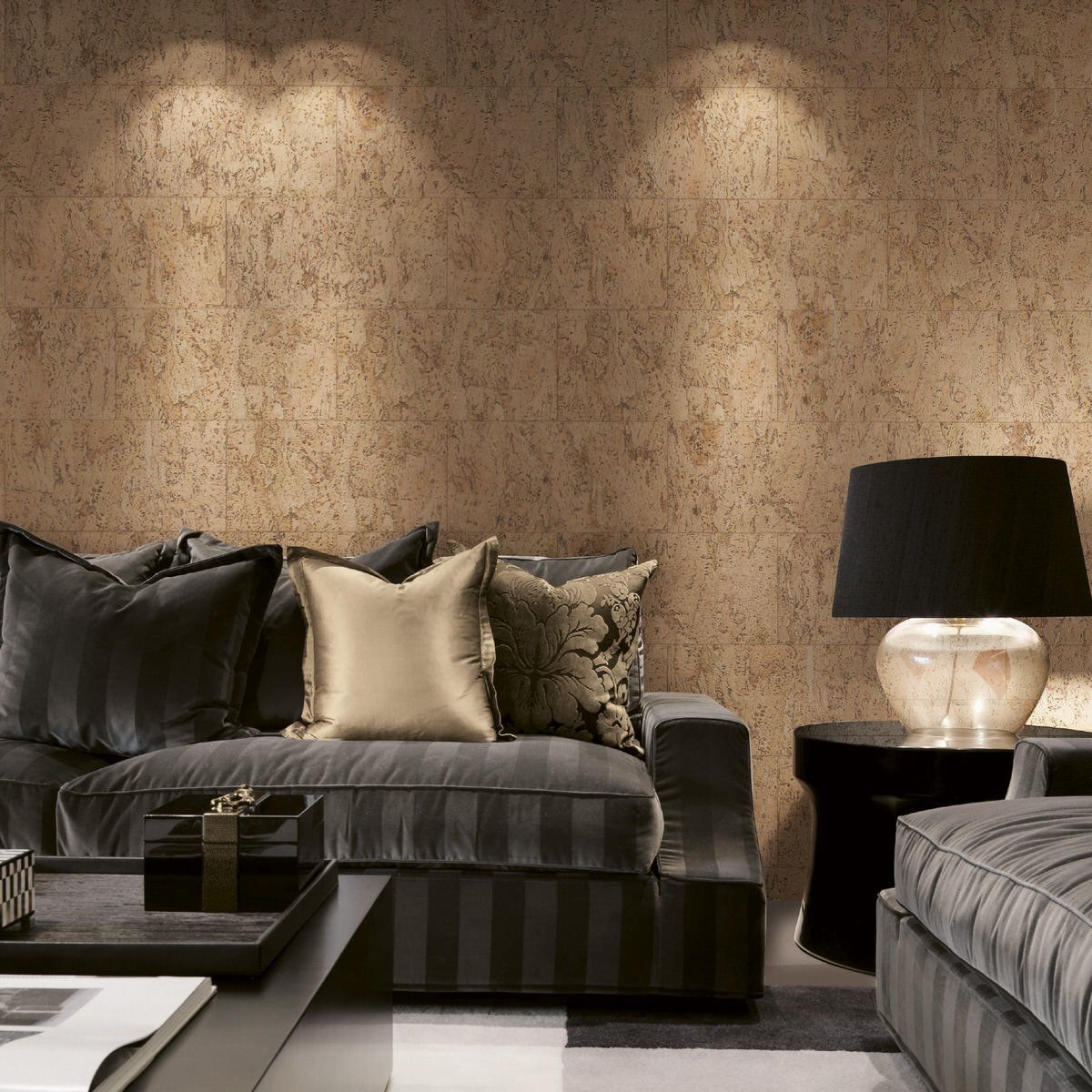 Пробковая стена в интерьере гостиной