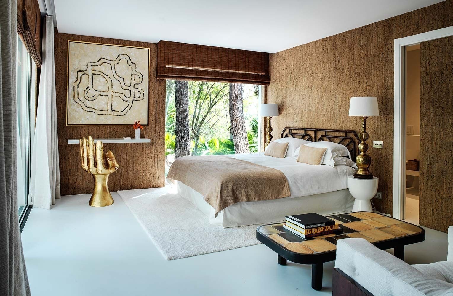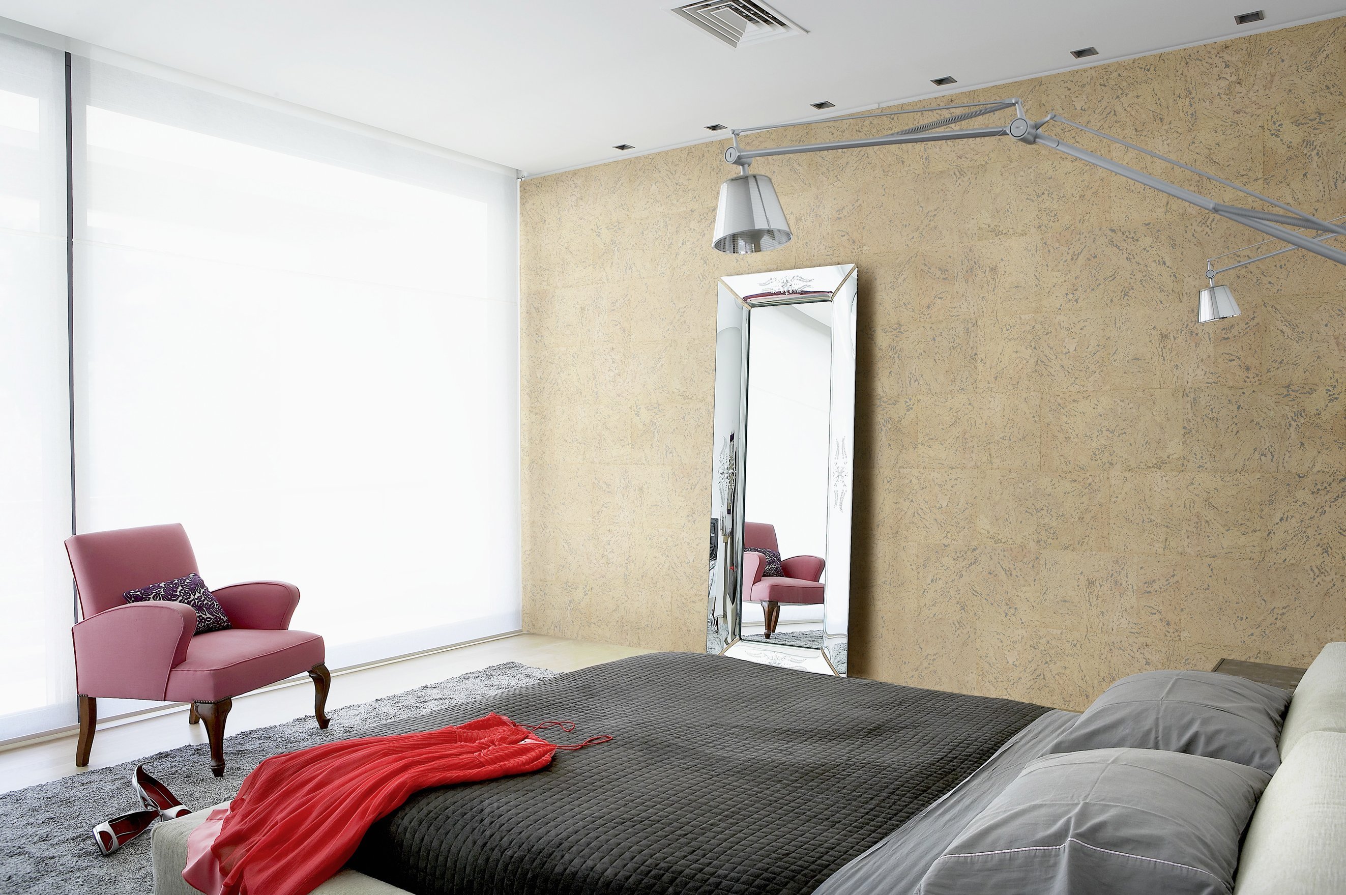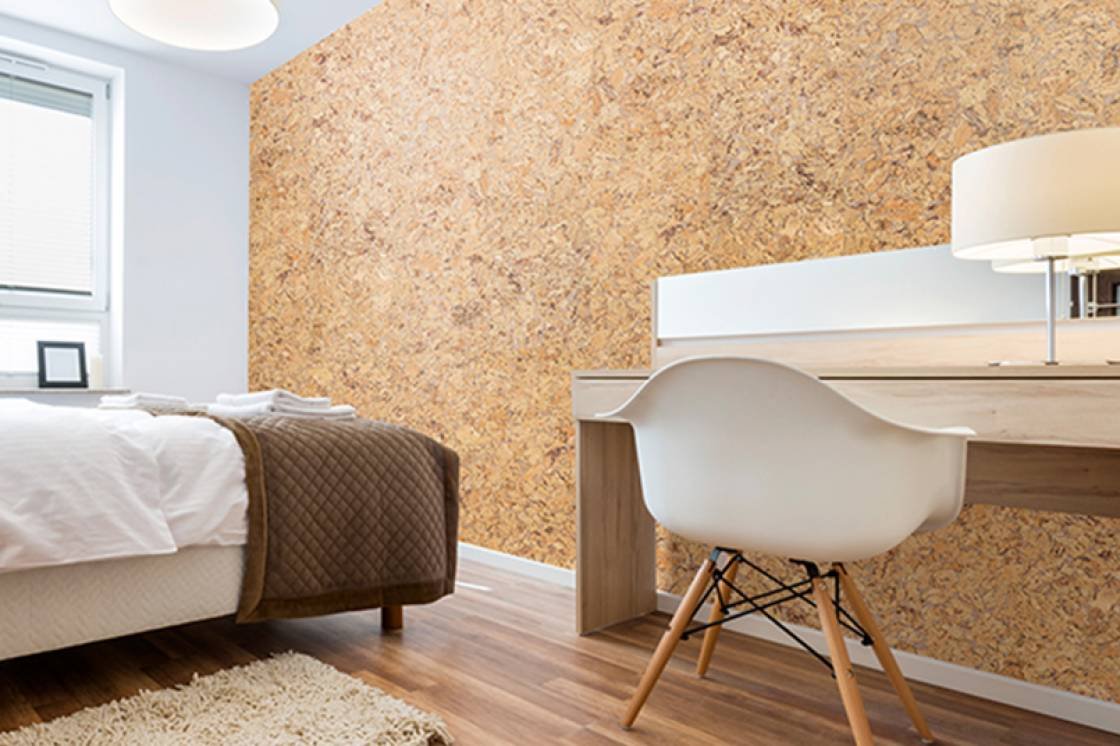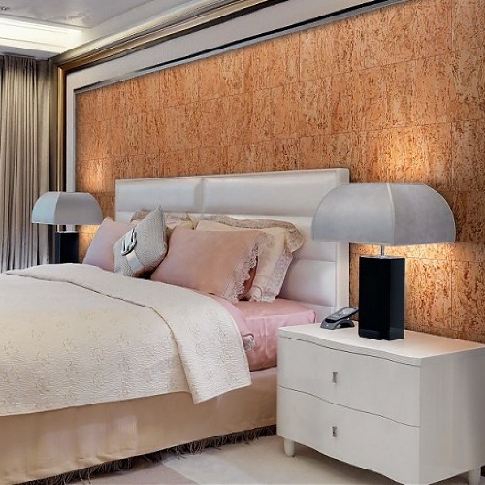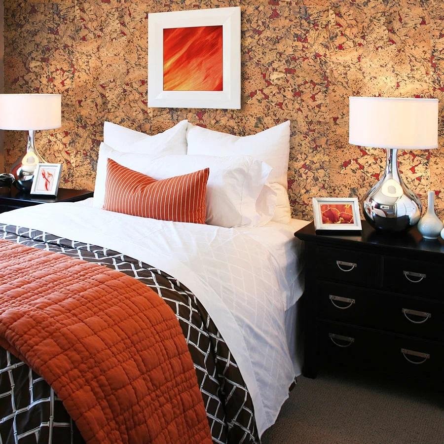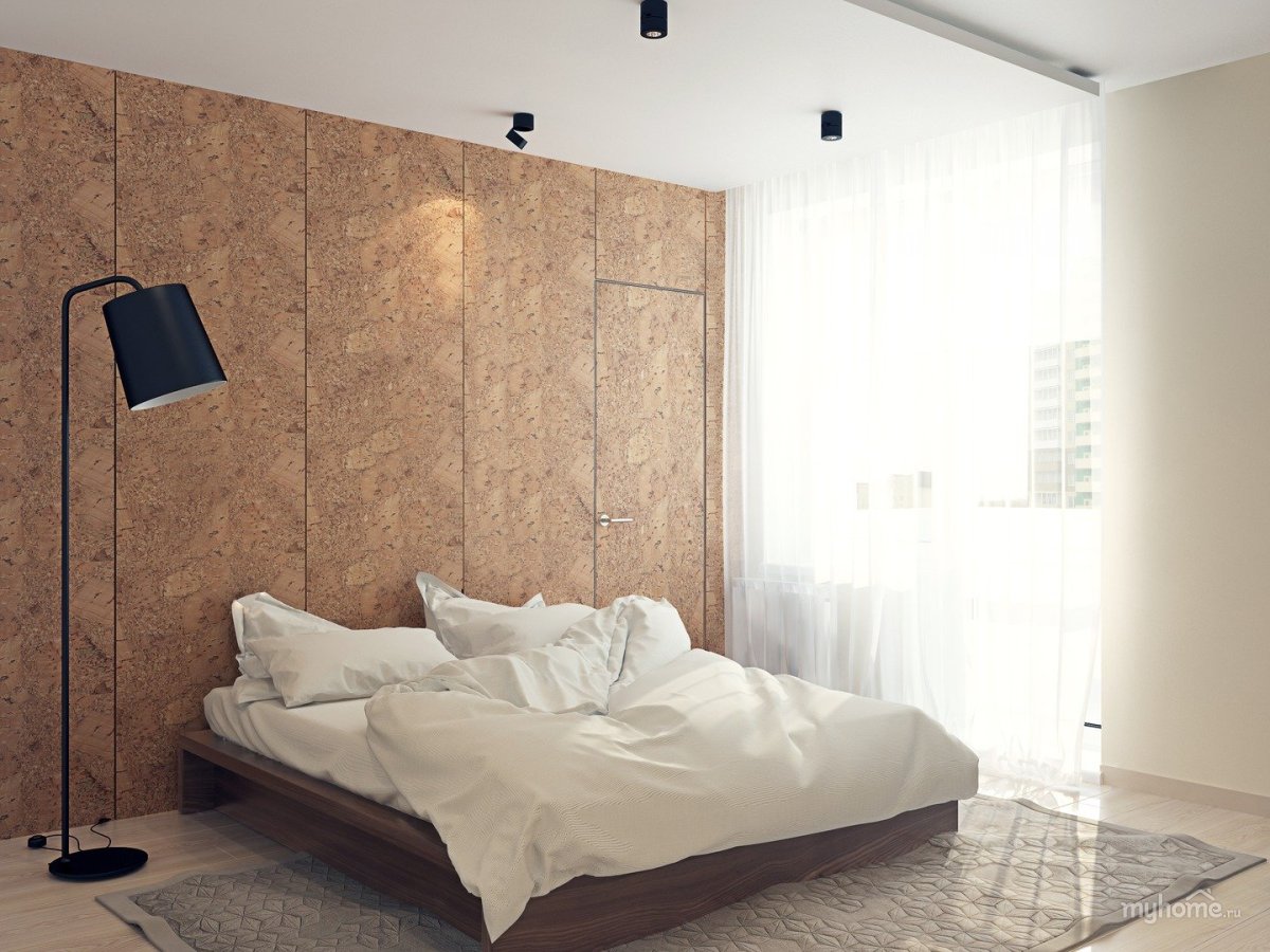 Пробковая стена в спальне