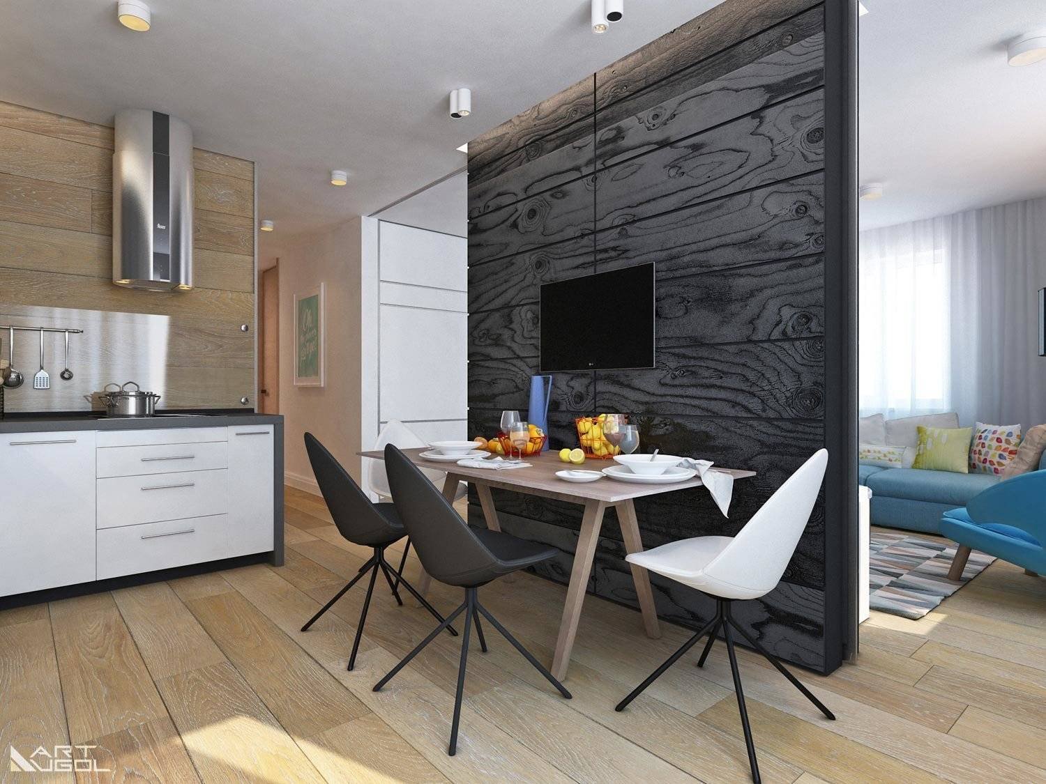 Ламинат на стену в кухне гостиной