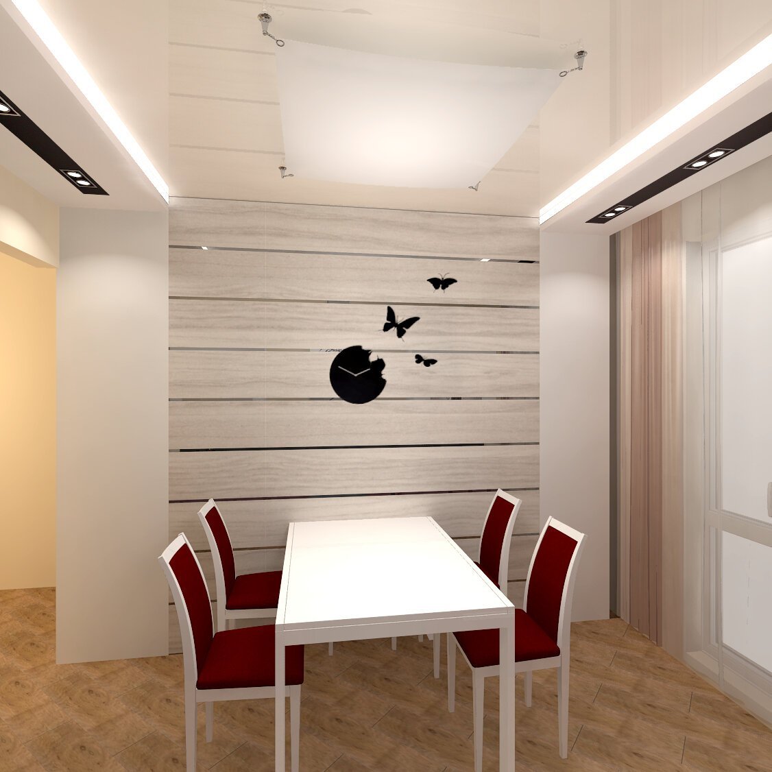 Ламинат на стене в обеденной зоне