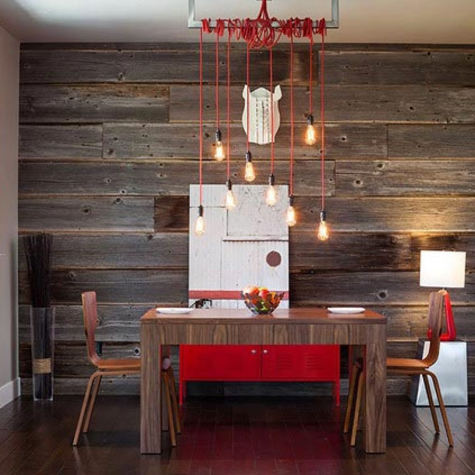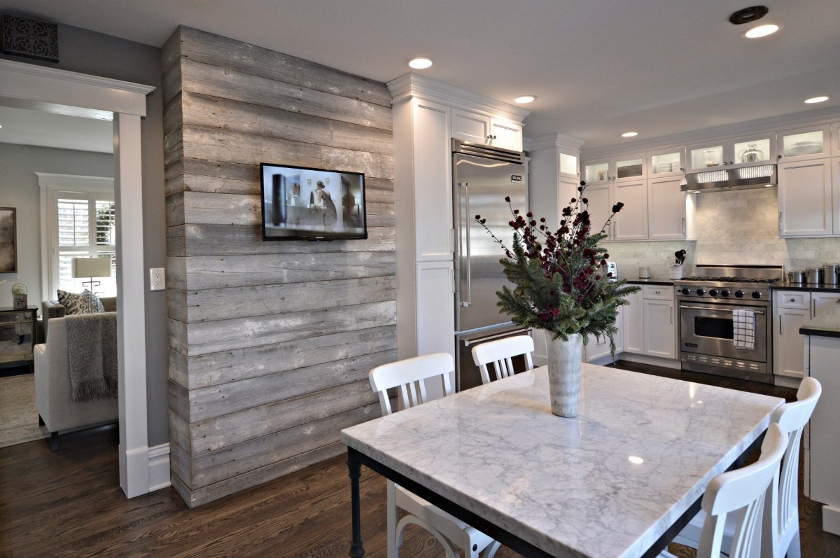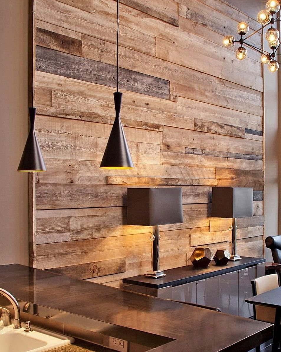 Стена из амбарной доски в интерьере