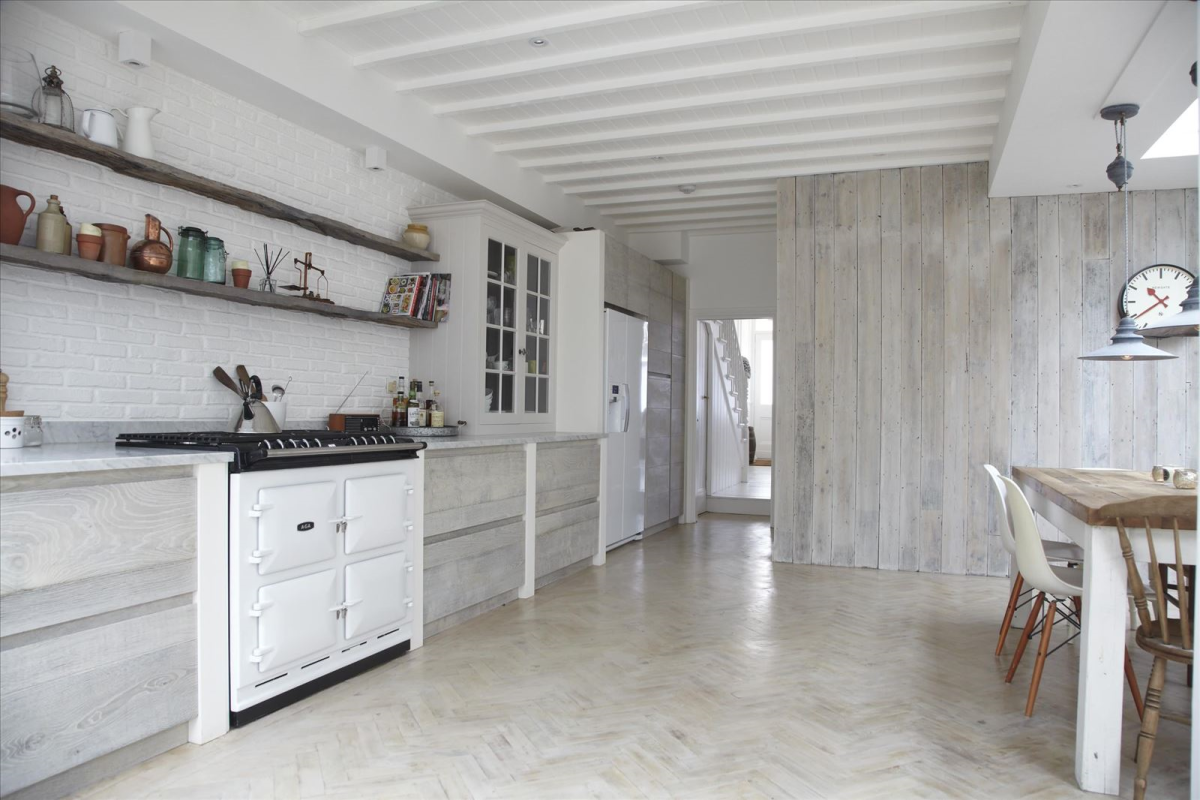 Деревянная стена на кухне
