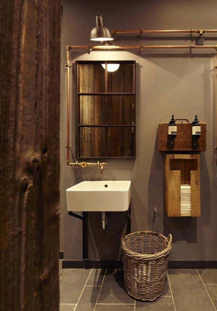 Туалет в стиле лофт с трубами