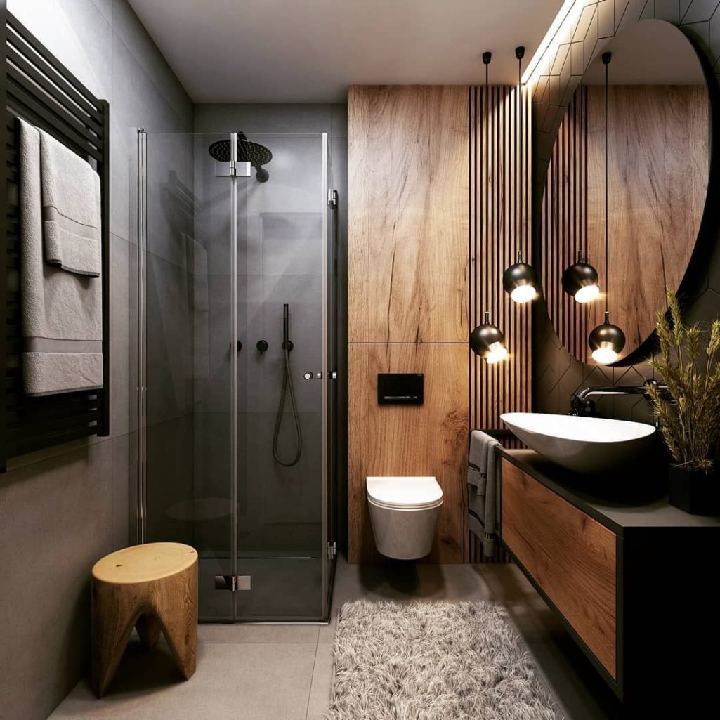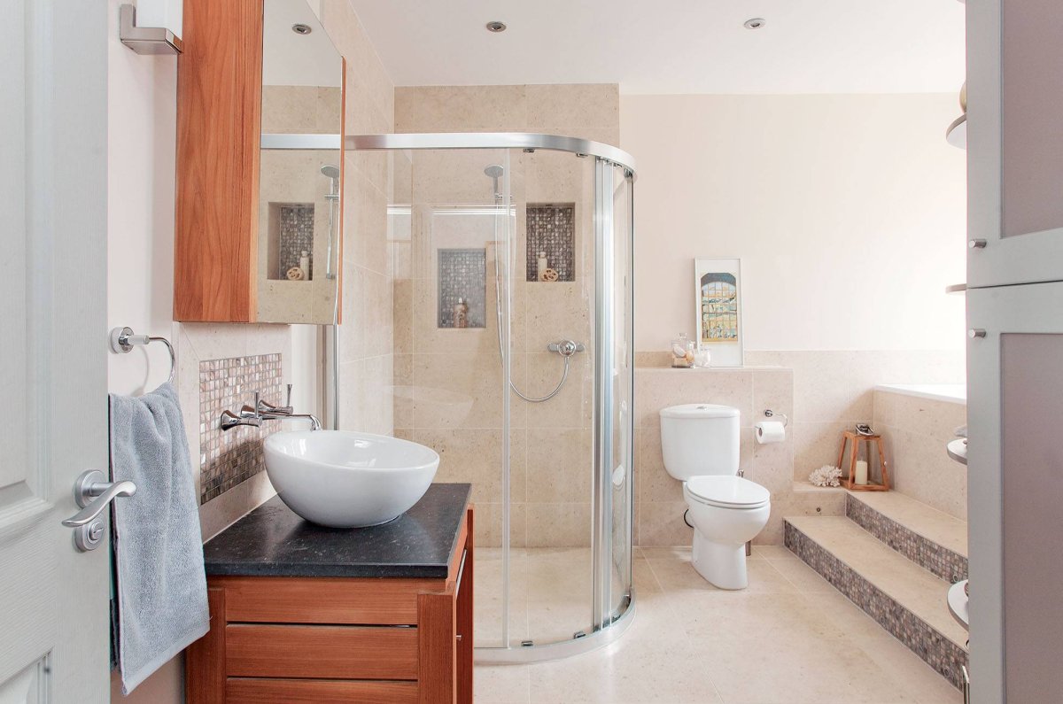 Санузел с душевой под дерево