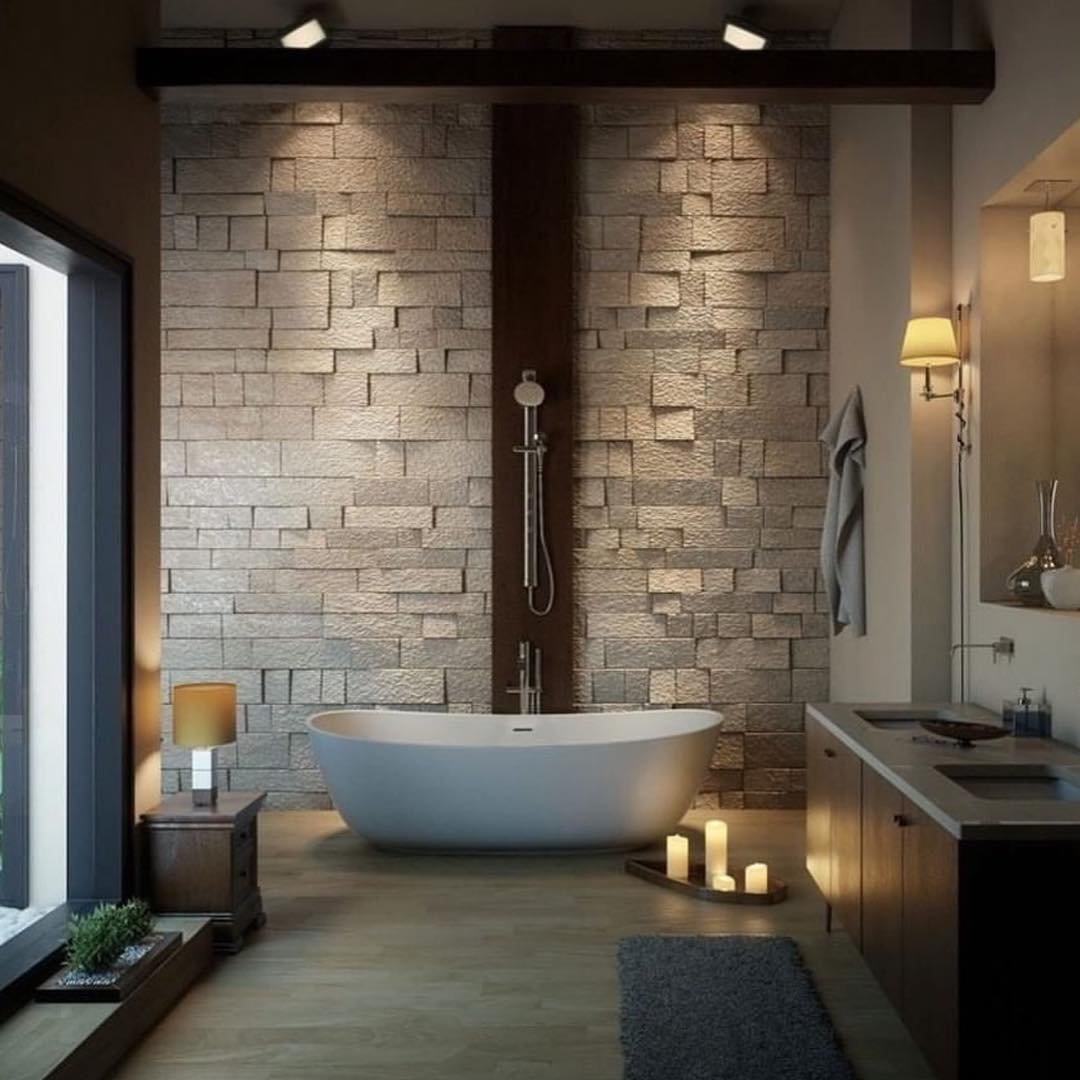 Отдельностоящая ванна в интерьере