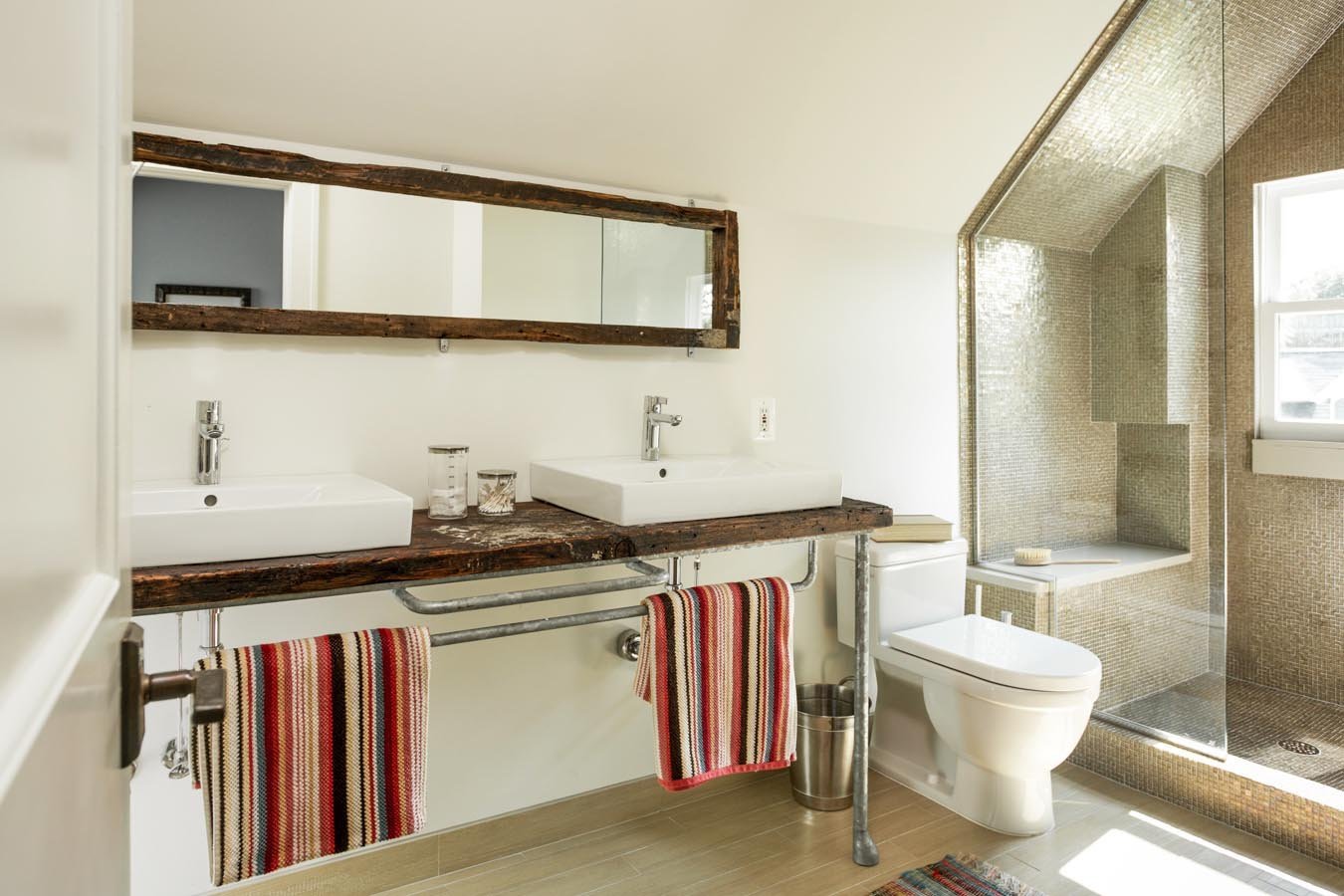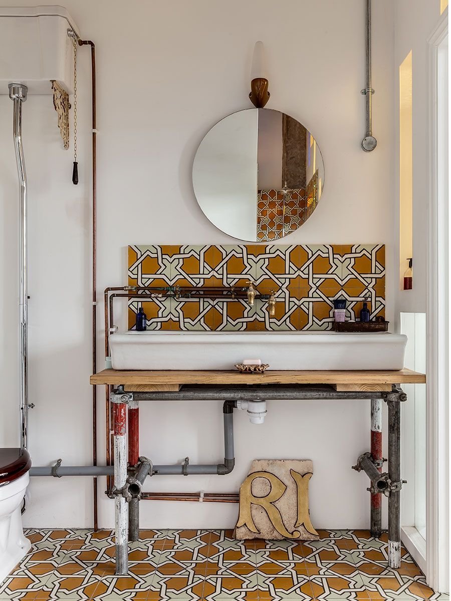 Открытые трубы в интерьере ванной