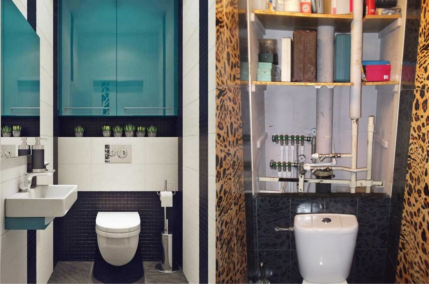 Санузел с открытыми трубами