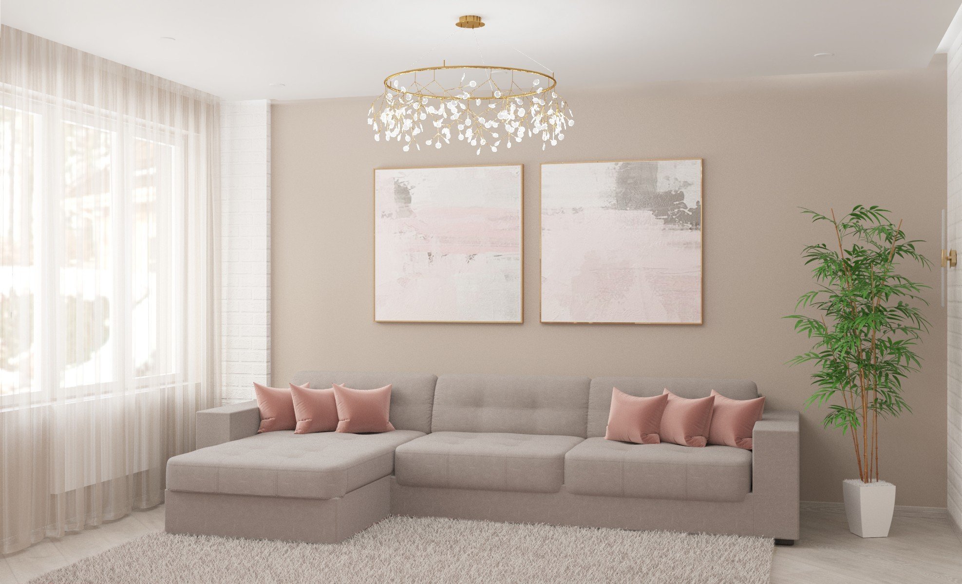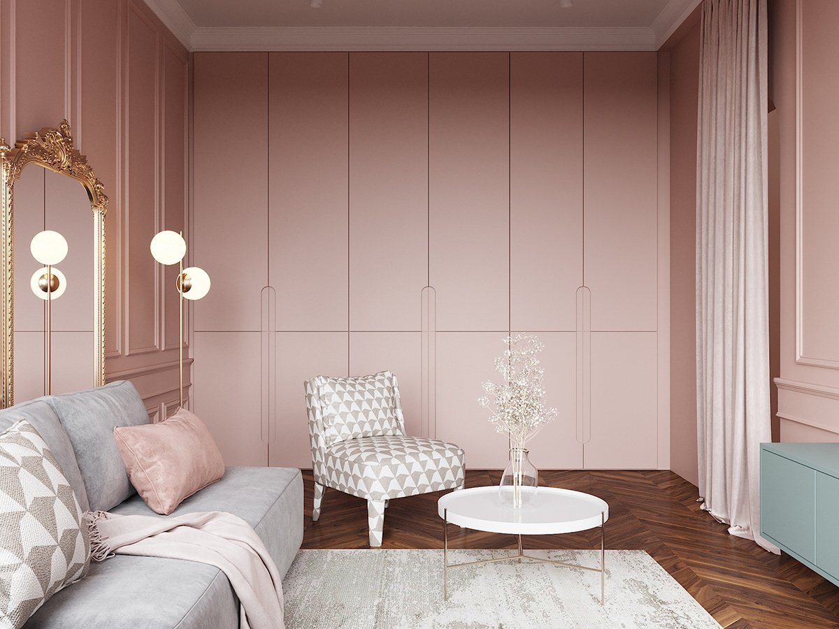 Гостиная в пудровых тонах