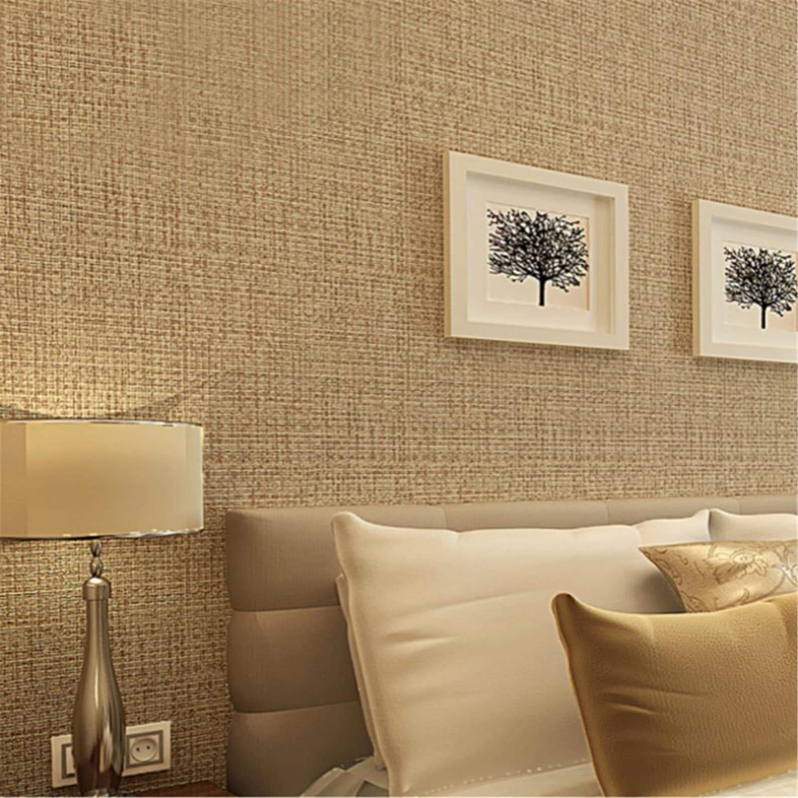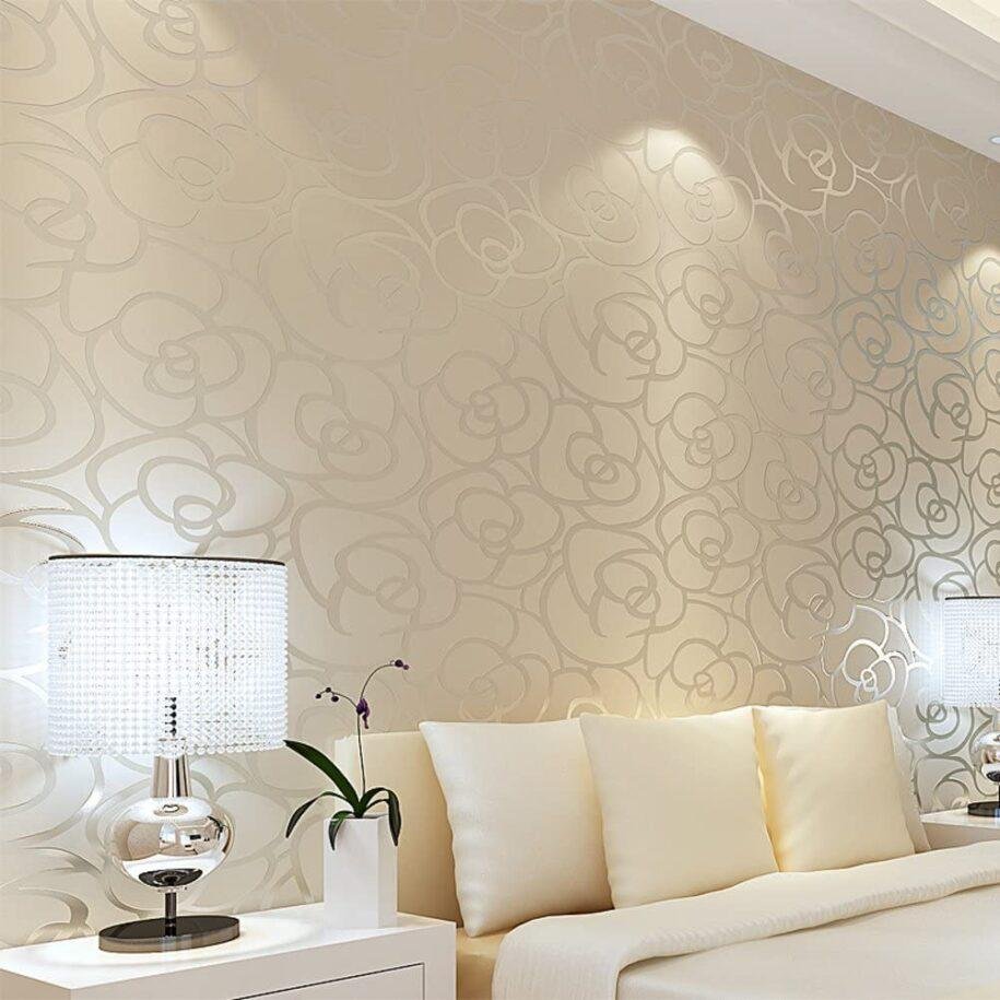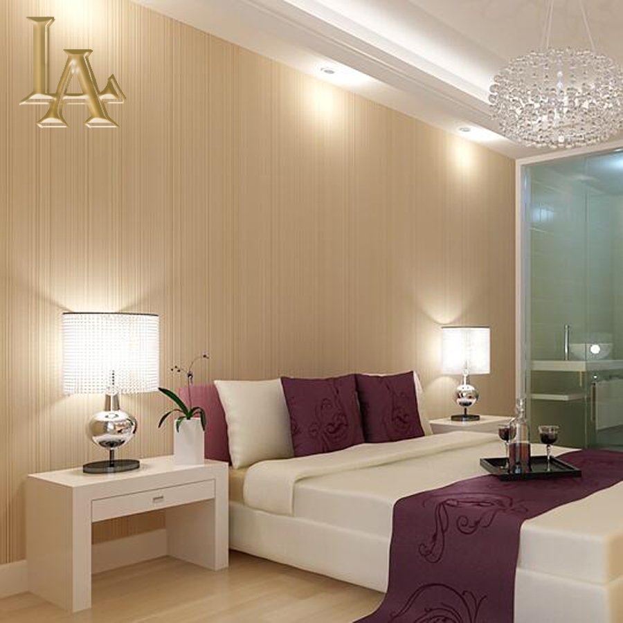 Бежевые обои однотон в спальню