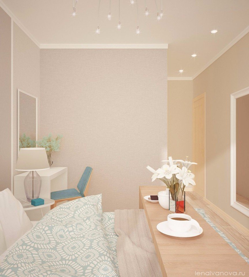 Небольшая спальня в светлых тонах