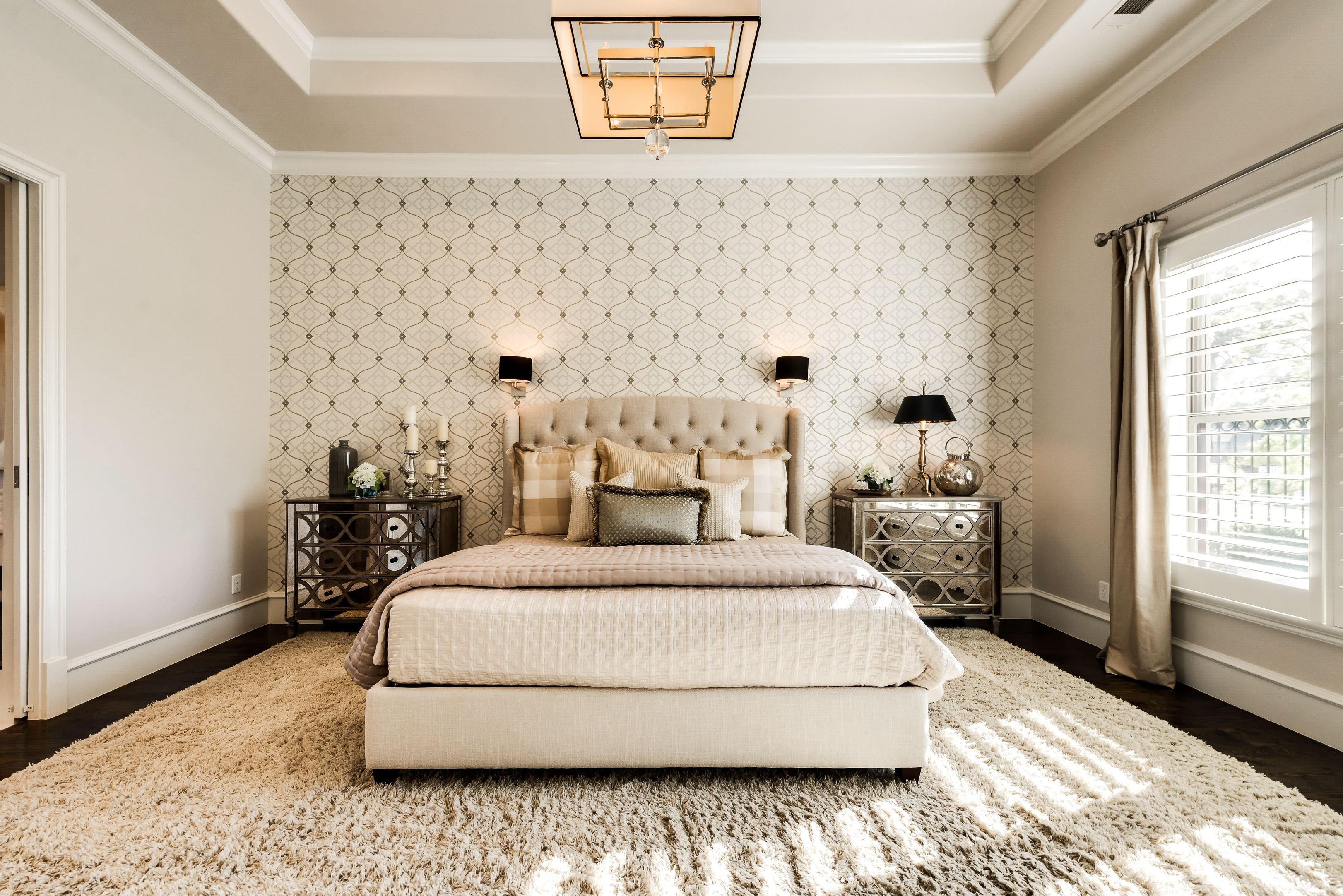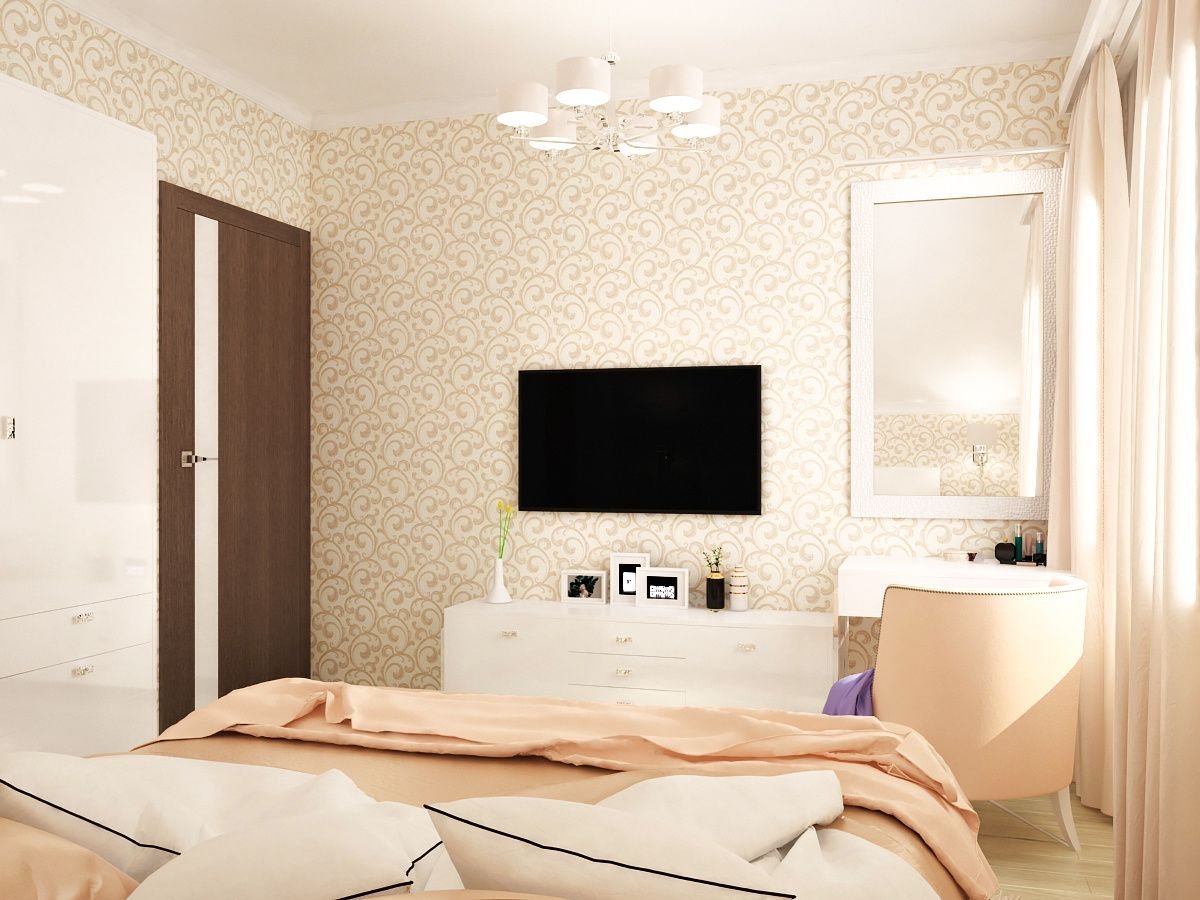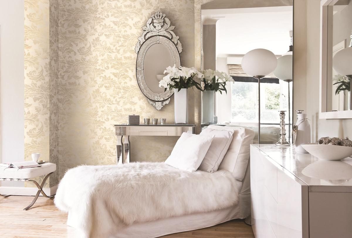 Бежевые обои в спальне