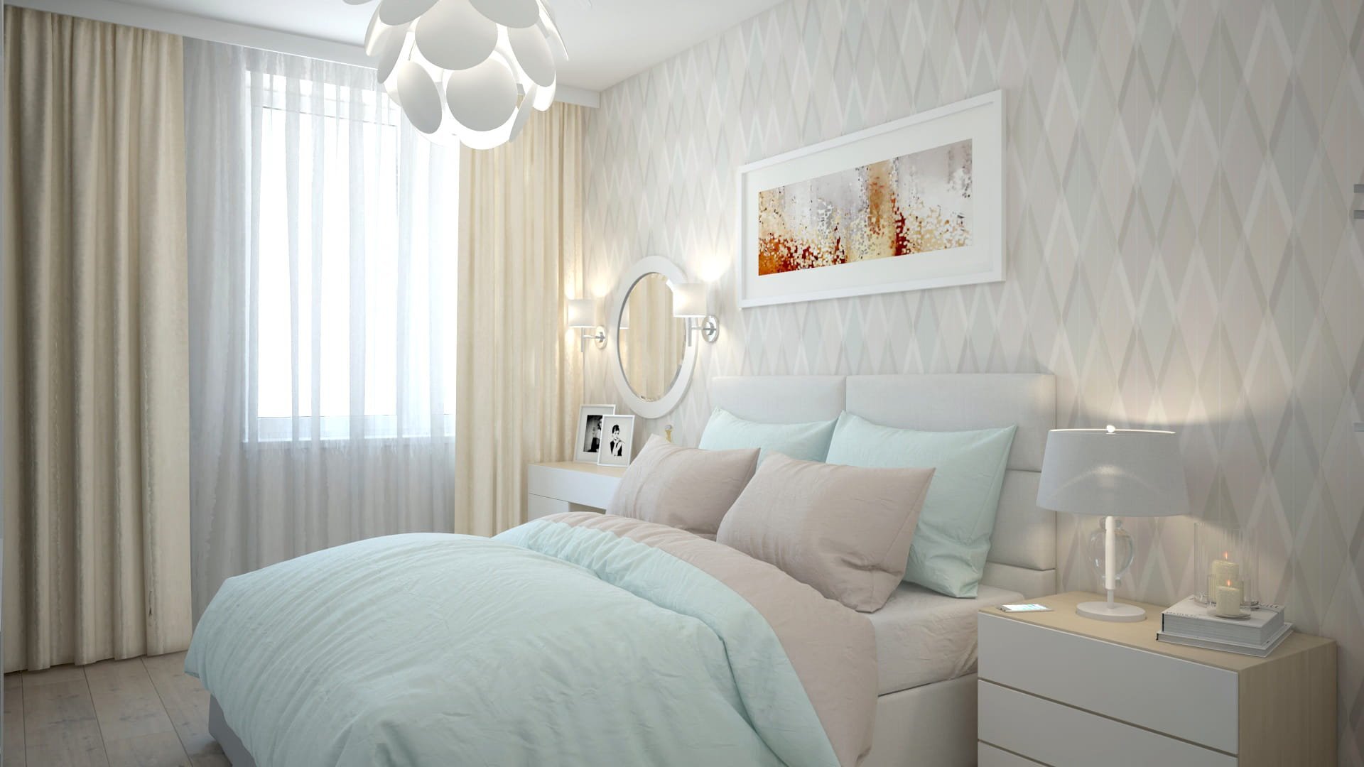 Стильная спальня в пастельных тонах