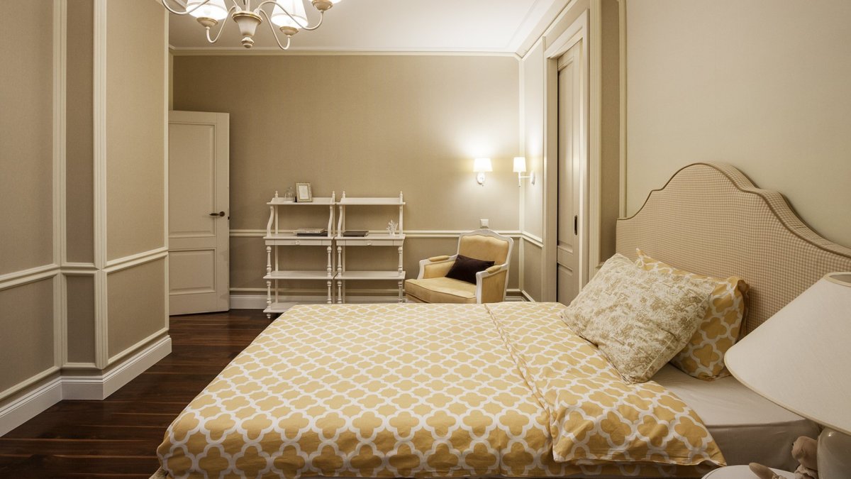 Бежевые стены в спальне