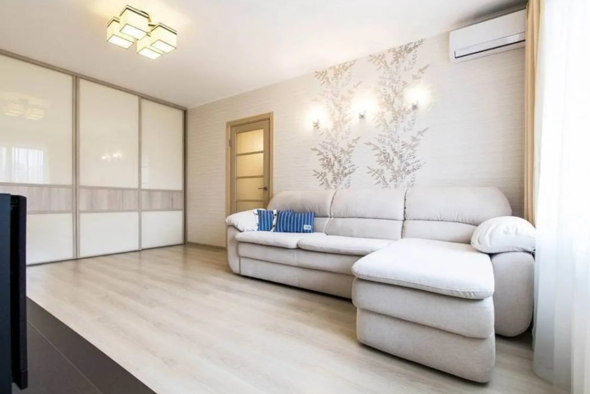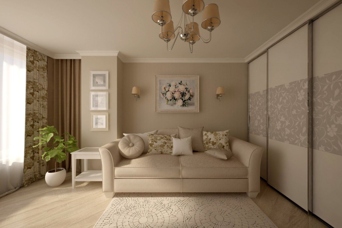 Гостиная в хрущевке в бежевых тонах