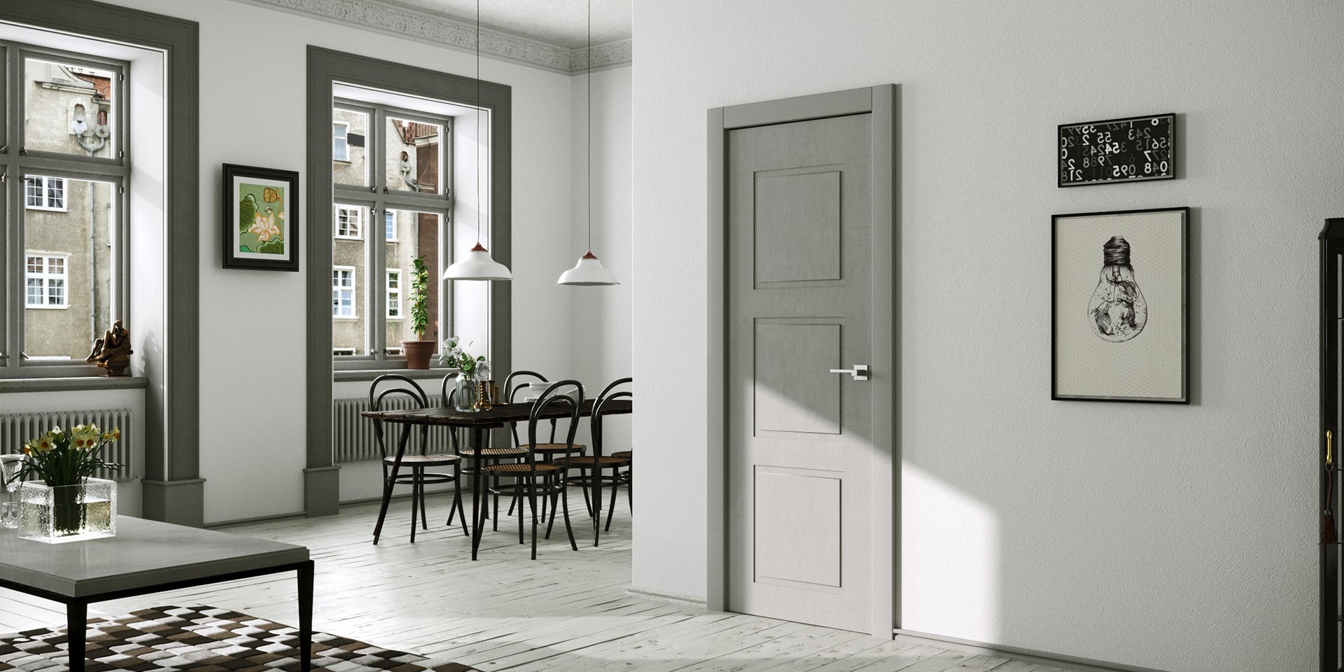 Серые двери межкомнатные в интерьере