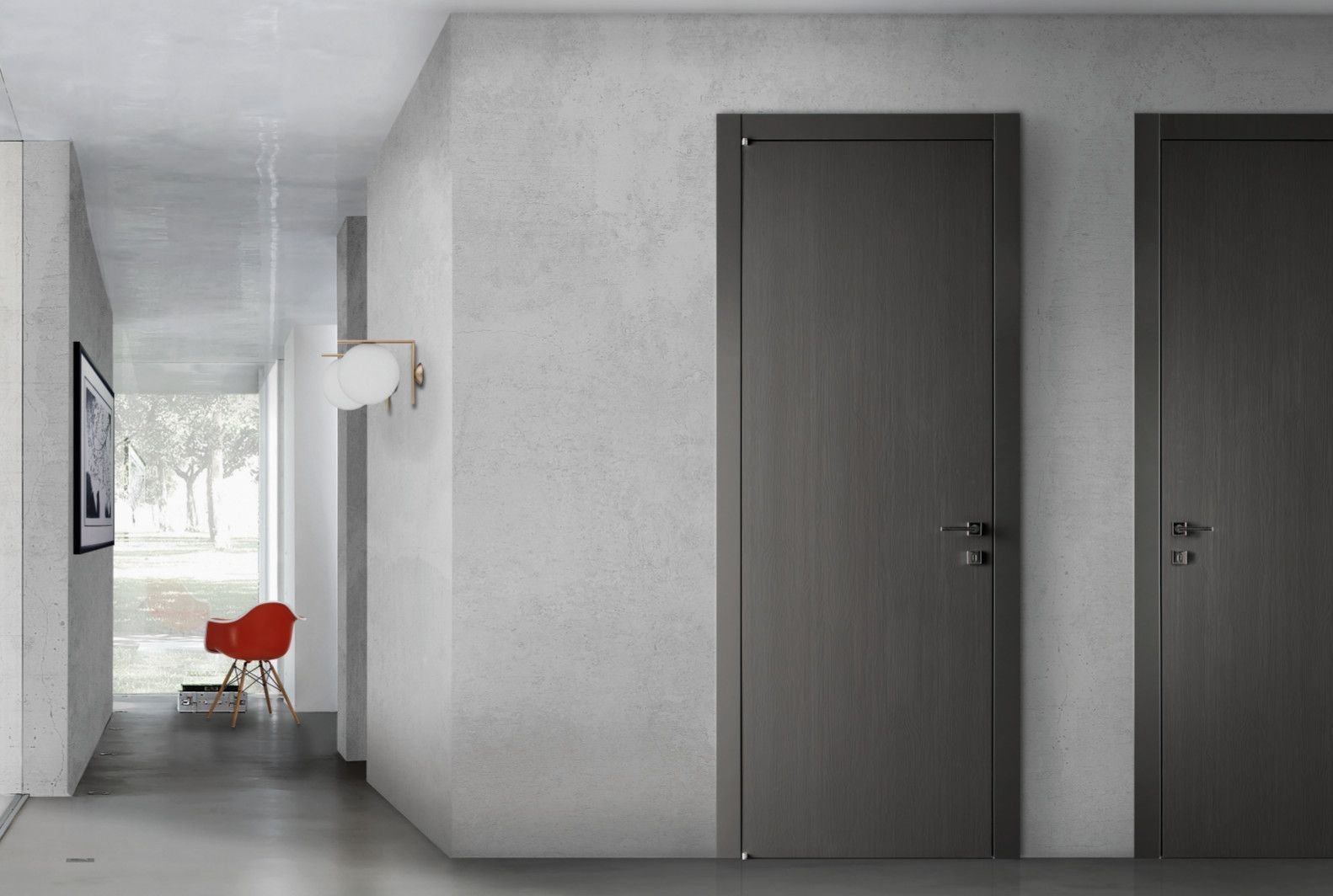 Двери под бетон в интерьере