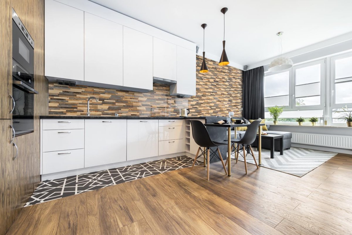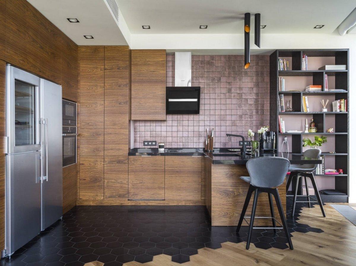 Кухня гостиная плитка и ламинат