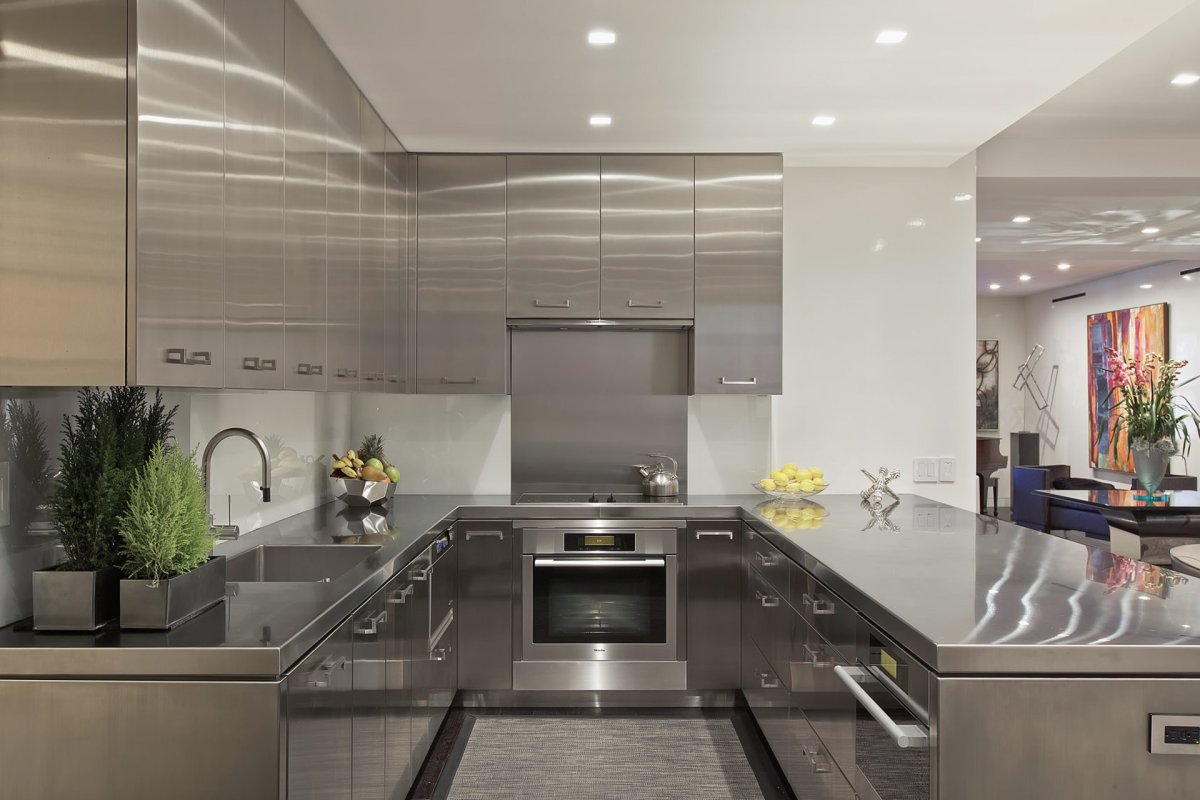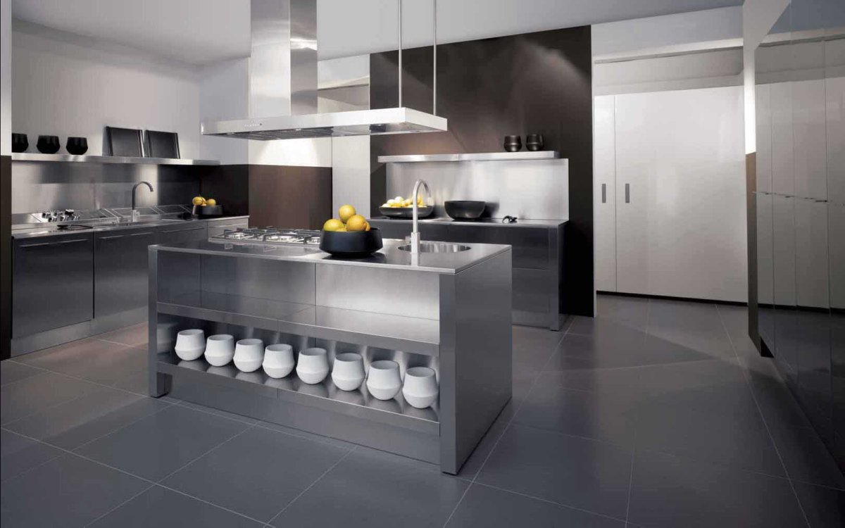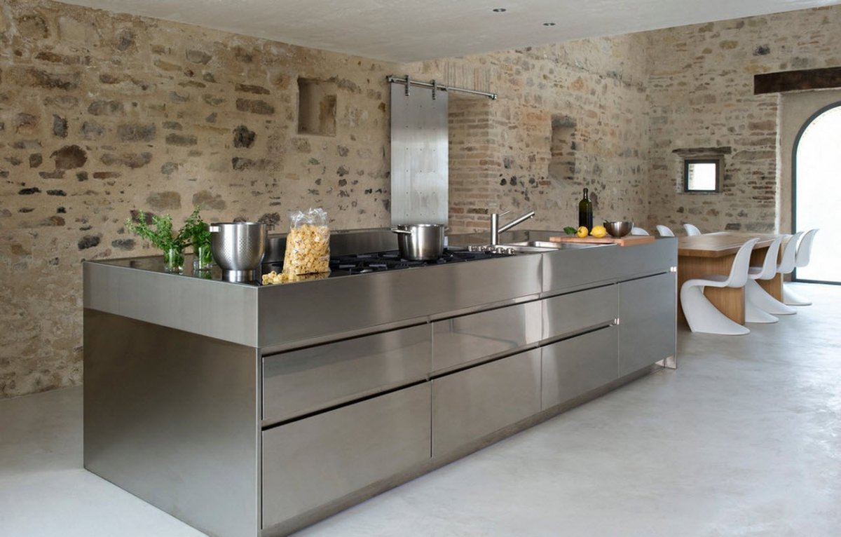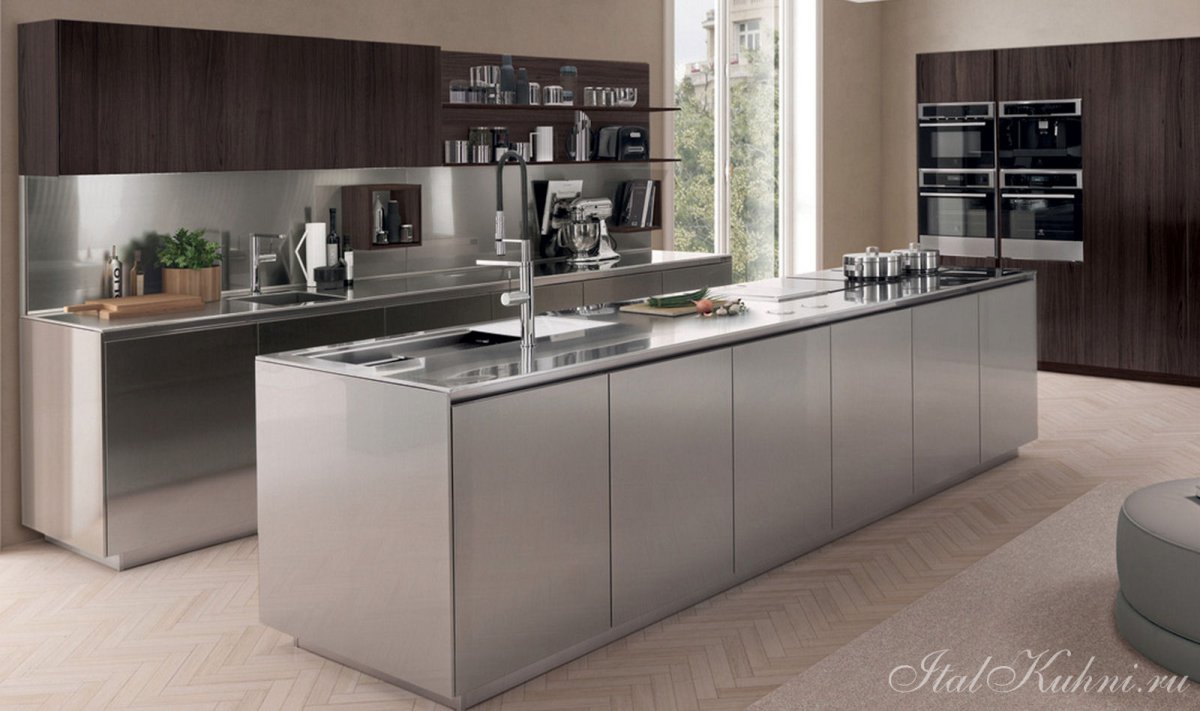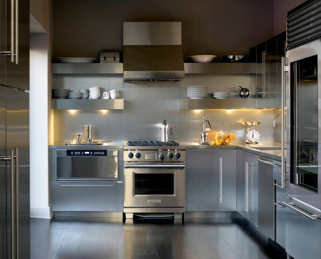 Интерьеры кухни из нержавейки