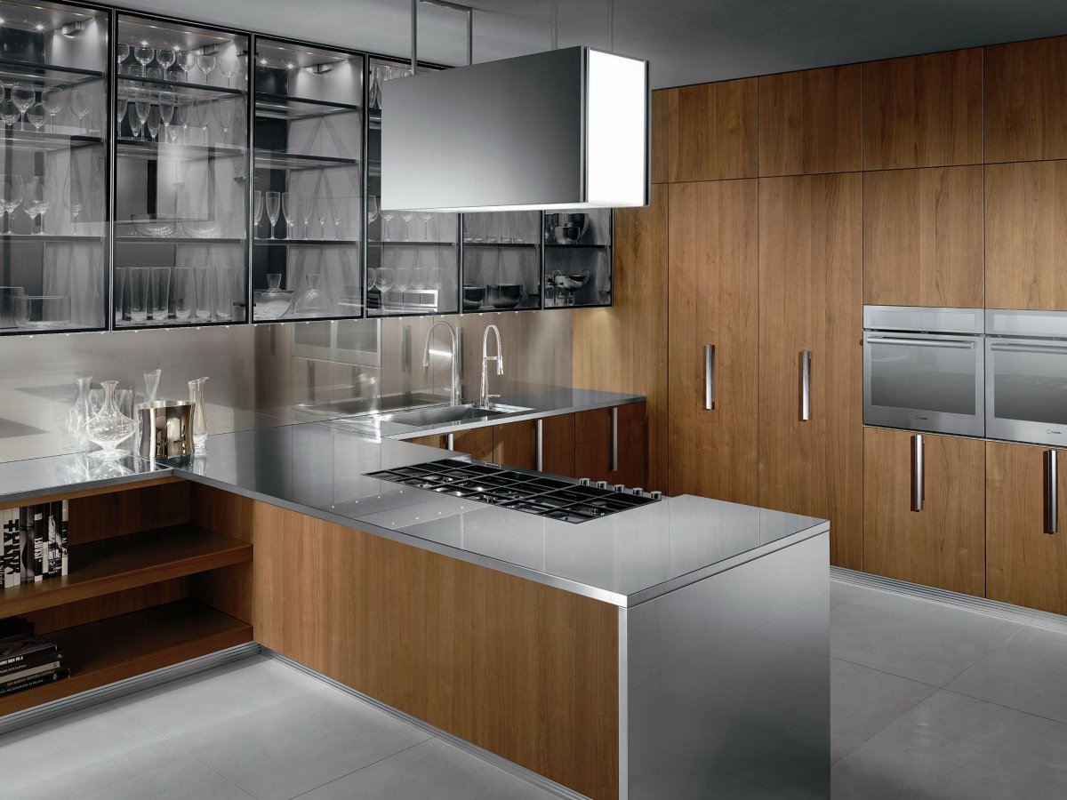 Кухня нержавеющая сталь и дерево